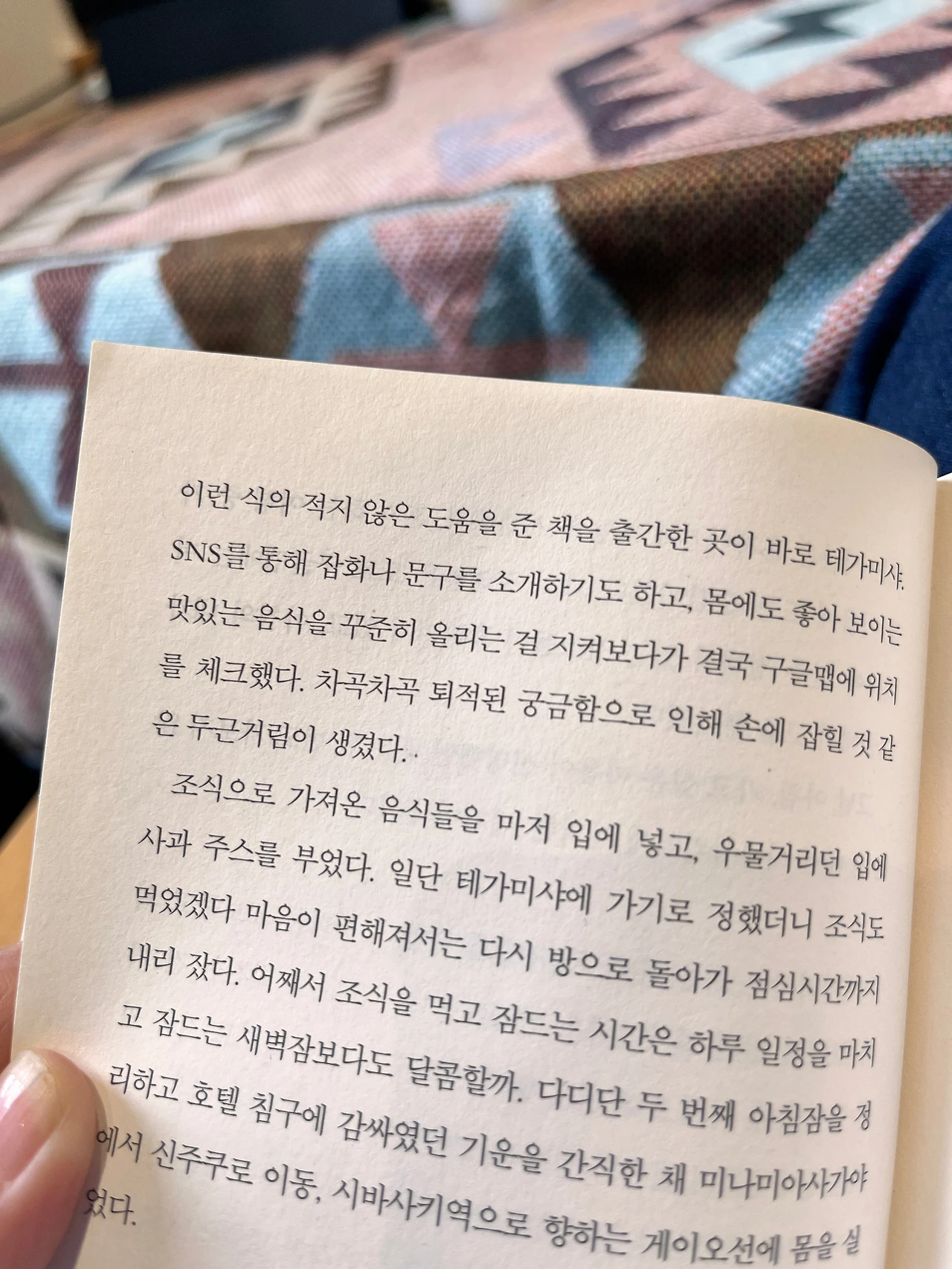 저에겐 오늘이 그런 날이었어요. 그런데 정작 오랫동안 보고 싶었던 그 책이.. 여간해서 눈에 들어오지 않는 거예요. 그래서 문득 앉은자리 옆을 보았죠. 여행도서 카테고리가 있는 곳이더라고요. 우연히 눈에 보이는 책 한 권을 집어 들었고요.