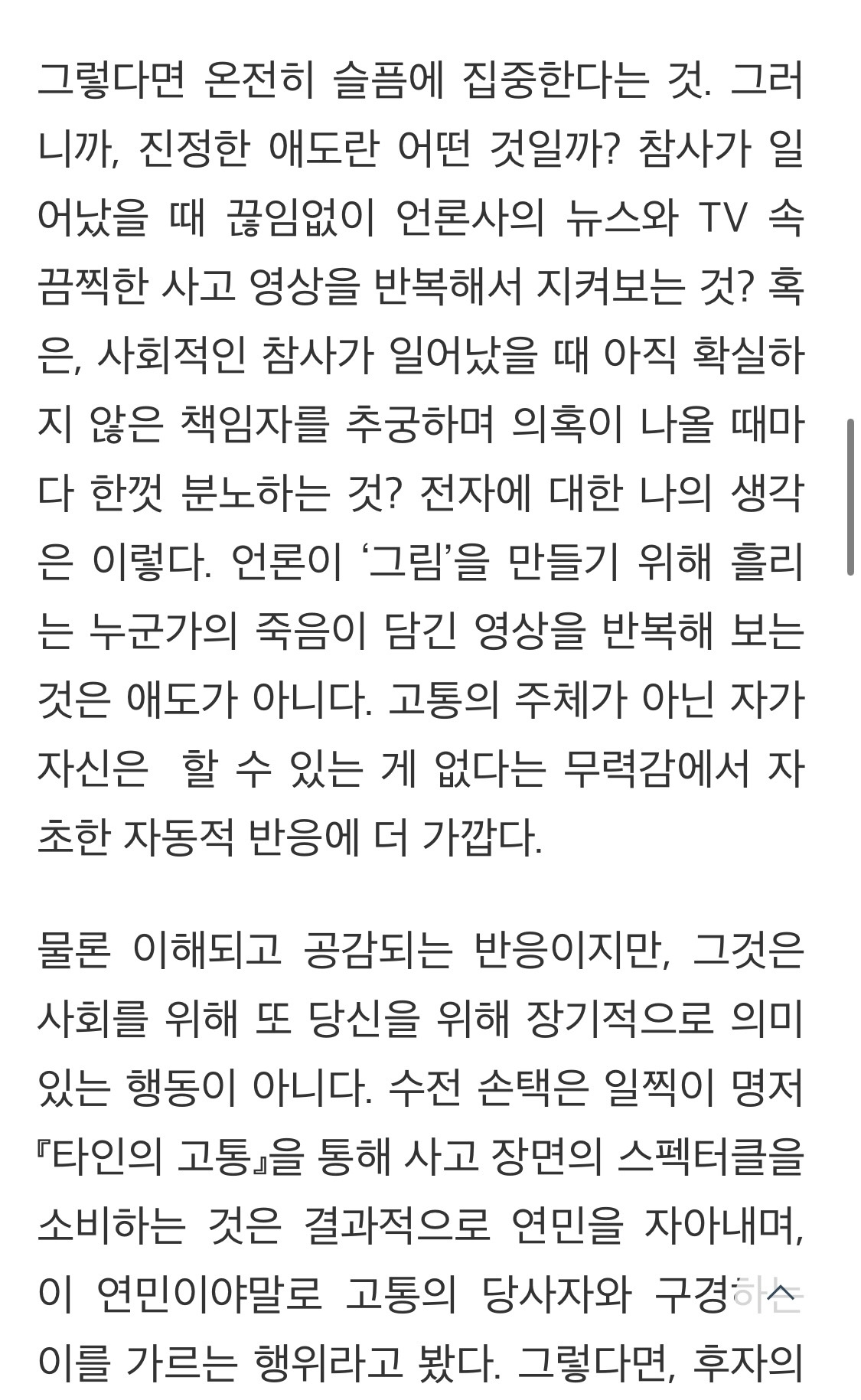 아이들은 대부분 텍스트 기사보다는 릴스로 자극적인 영상과 자막, 희화화된 조각뉴스로 소식을 접하고 있었어. 덕분에 나의 경우엔 먼저 잘잘못을 따지는 판단을 멈추고 슬프고 안타까운 감정 그대로에 충실하게 가까운 이들과 나누기, 일반화 하기 않기(쓸데없이 더 큰 두려움으로 번지는 것 막기)를 다짐하게 됐네!