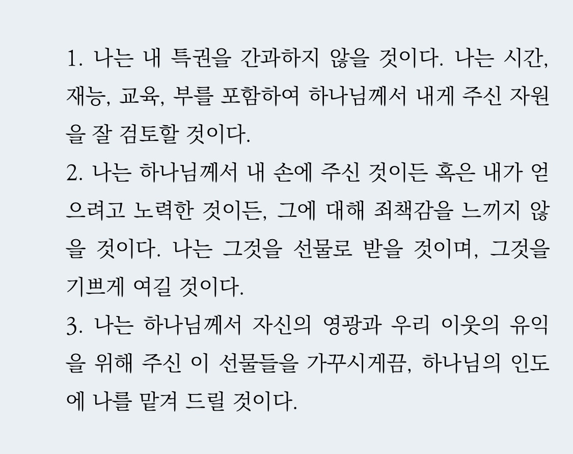 03. 하나님께서 자신의 영광과 이웃의 유익을 위해 선물들을 가꾸실 수 있도록 인도하심에 나를 맡겨드릴 것이다.