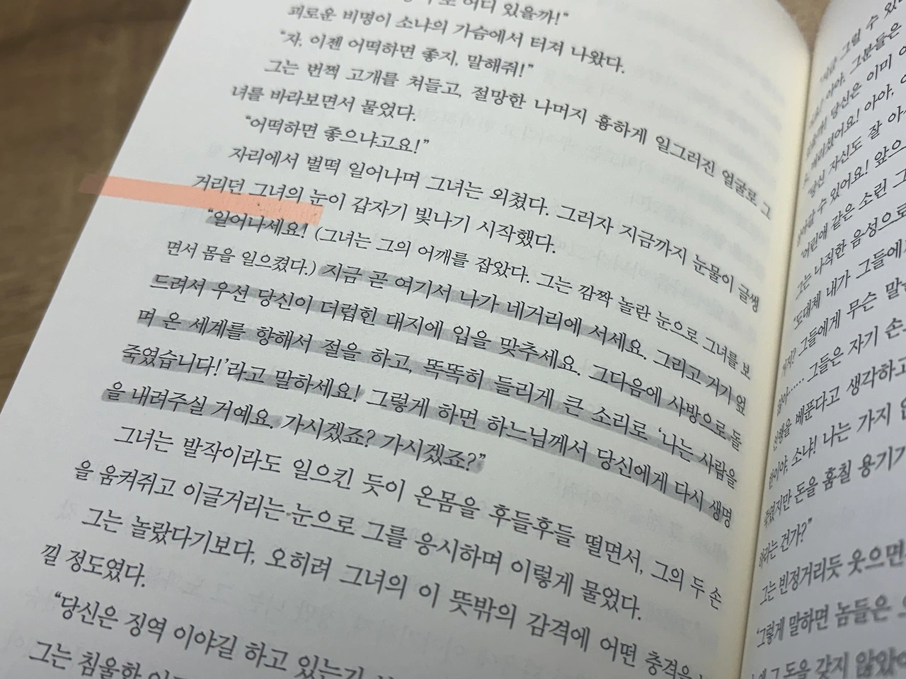 : 살인자 라스콜니코프의 ‘초인사상’은 지성을 갖춘 인간들이 만들어 낼 수 있는 최상의 이론이라 할 수 있을 것이다. 법을 만들고 그 법칙에 따라 살아가는 이상적인 사회구조. 하지만, 라스콜니코스가 보여주듯 인간을 살아있게 하는 것은 옳고 그름을 판단하는 법과 기준이 아니었다. 더 성숙한 시민이자 인간답게, 자유인으로 살기 위해서는 우리 인간이 만든 법 위에, 우리가 닿지 못하는 창조주의 법이 있다는 것을 인정하며 그 법과 도를 살아가는 것이 아닐까. 소냐가 몸소 보여준 희생, 사랑과 은혜가 결국은 라스콜니코프를 빛 가운데로, 온전한 생으로 걸어가게 했다. 올해 나에게 가장 많은 질문과 생각거리를 던져 주었고 그래서 공부를 많이 했던 책이기에. 수많은 소설들을 제치고 올해의 베스트 책!