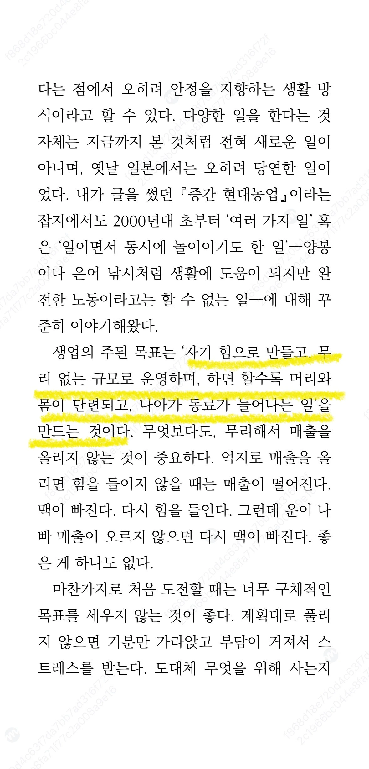 ‘지금 하는 일의 규모가 왜 더 확장되지 않을까’, 그리고 ‘지금의 직업을 어떻게 생업이 되게 할 수 있을까’를 고민하며 이 책을 읽고 있는데, 목표를 다르게 세워야겠구나 싶었어. 당연한 거지만 단순히 매출을 늘리기 위한 노력보다, 이 일에 협력하고 함께 하는 동료가 늘어나는 것 (지향점이 같은 이들이 많아지는 것)에 방점을 둔 시도를 해봐야겠어!