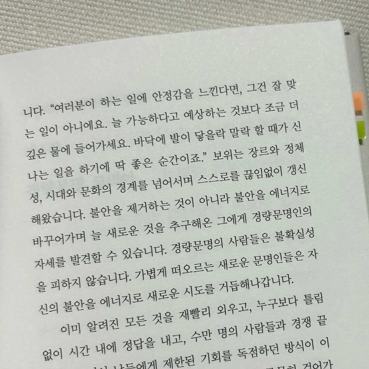 지난 송길영 작가 북토크에서 가장 인상적인 답변 중에 하나가 “저도 몰라요” 였어. 근데 그게 ‘에이 뭐 저런 대답이 어디 있어’라는 생각보다 우와 참 겸손하시네 싶더라고.. 그렇게 공부하고 찾아도 모르는 영역이 있을 수 있음을 인정하는 것. 그게 지혜라는 생각이 들었어.