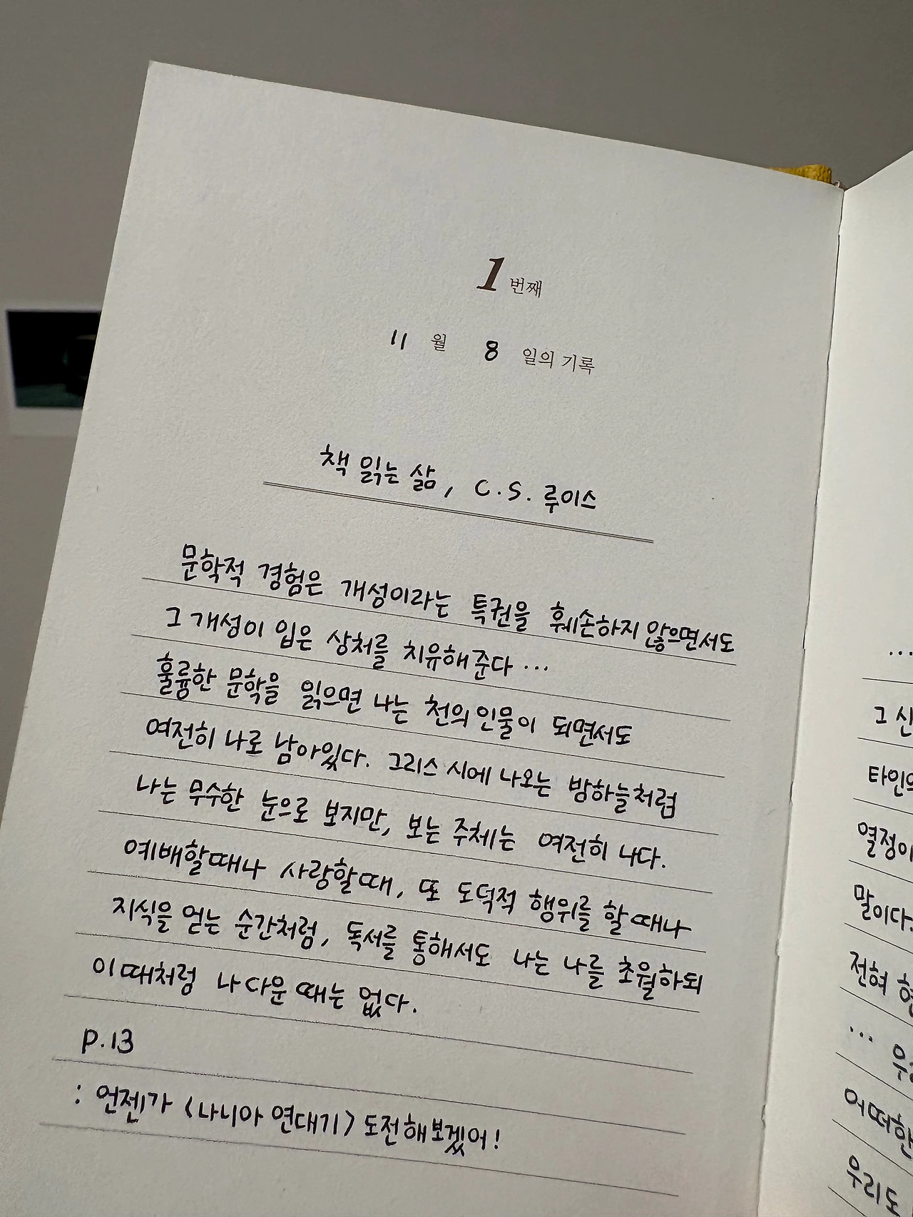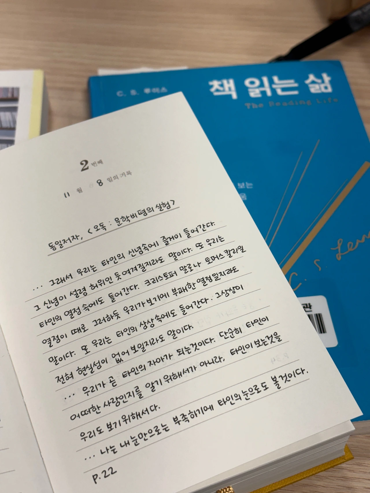 곱씹고 생각하고 멈춰야 하는 책을 좋아하는데, 바로 이 책이 그런 책이라 바로 필사노트를 펼쳤어. 일단 믿고 보는 작가이자 애서가인 CS루이스가 생각한 책 읽는 삶의 정리가 궁금해졌어. 책을 읽으면서 어렴풋이 생각했던 개념들이 제자리를 찾는 기분이 드는 행복한 토요일이었어