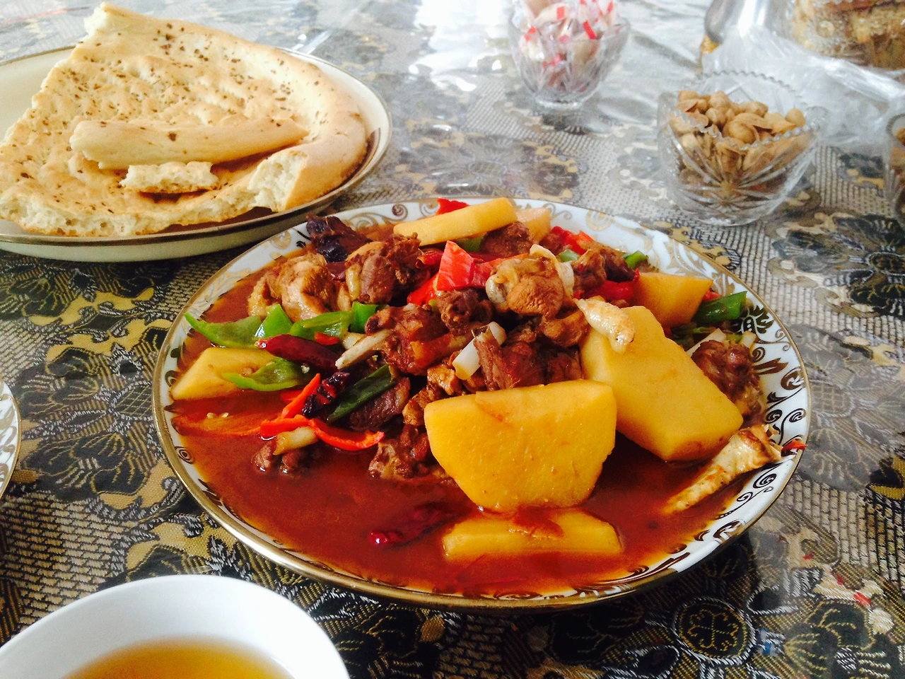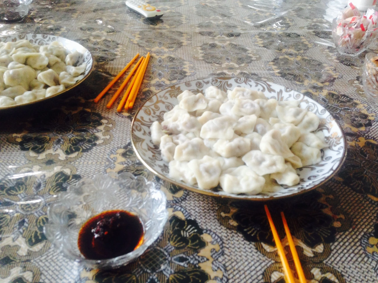 친구네 엄마가 해주신 옥수수와 따판지(닭볶음탕과 비슷한!)를 해주셨고, 저녁엔 양고기찌아오즈(물만두)를 해주셨다.