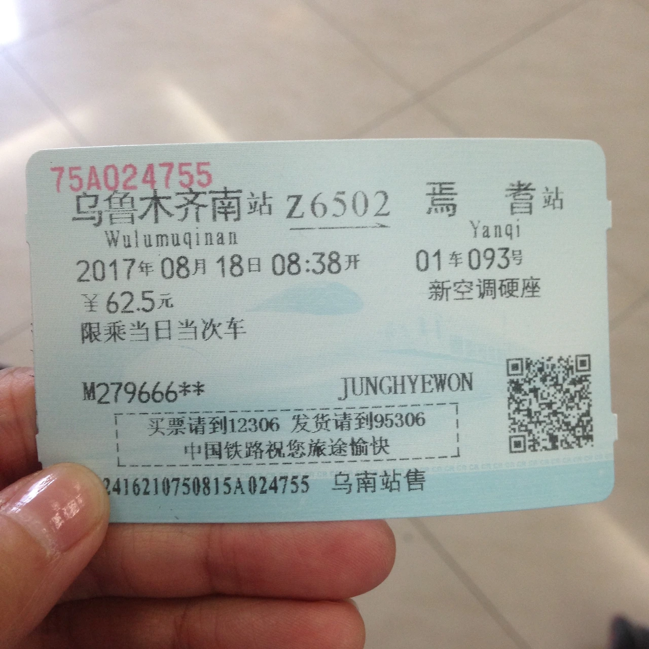 7:40 우루무치 남역 도착