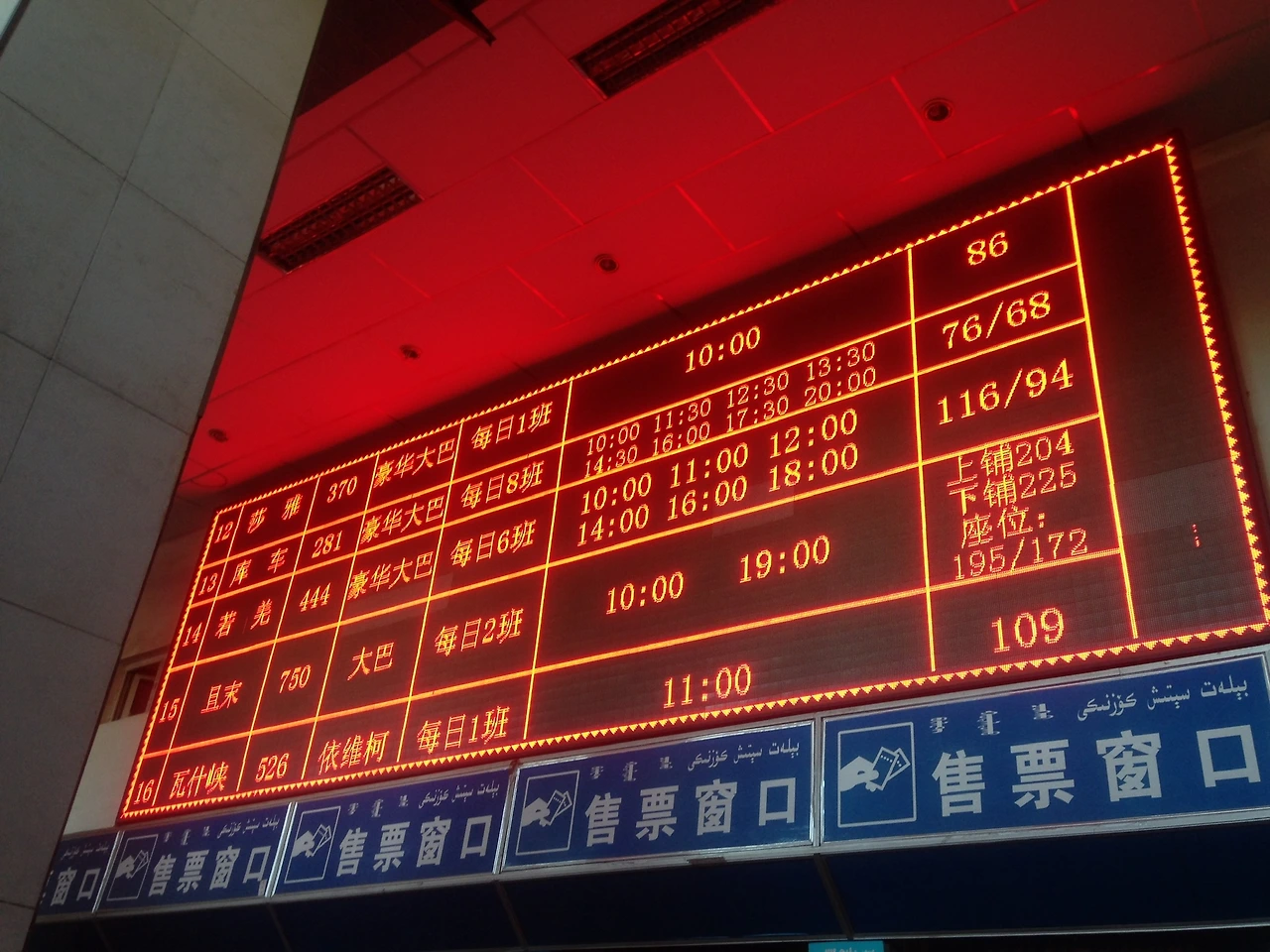 쿠얼러 버스터미널에 도착했다. 도착해서 다음여정의 버스시간과 요금을 확인해놓는다. 다음날 바로 쿠처로 이동하지는 않고, 하루 더 쿠얼러를 보고나서 이동할 계획이지만, 인터넷으로 알아보면 정보가 틀릴 수도 있으니 이렇게 기록으로 남겨두고 밖으로!