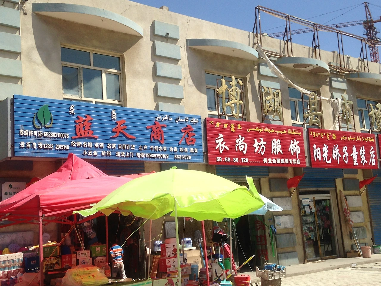 어제 묵었던 숙소가 있는 옌치는 회족자치현이지만, 더 크게는 바잉궈렁몽골자치주에 속해있다. 보스턴호가 있는 보후현은 몽골족들이 많이 살고 있는 것 같았다. 이른 저녁을 먹으러 돌아다니고 있는데, 간판 하나에 중국어, 위구르어, 몽골족언어까지 3개의 언어가 동시에 적혀있는게 보여서 너무 신기했다.