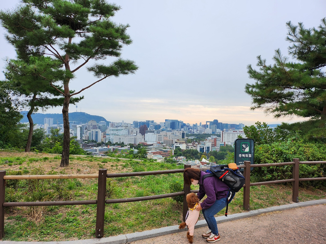 >>삐삐와는 낙산공원을 총 2번 갔는데 처음 갔을 때가 2022년 5월에 당산역에서 걸어서 갔고요... (3시간 40분 걸었음요) 3년 전이니까 가능합니다. 지금 체력으로는 둘 다 힘들어요. 낙산공원 쪽에 사는 삐삐 친구 또치보러 갔어요. 낙산은 대학생시절부터 좋아했던 곳이에요. 서울 도심에 있지만 고즈넉함이 느껴지고, 낙산에서 보는 서울 전경이 꽤 근사하거든요. 그런 곳을 삐삐와 함께하니 더 좋던걸요. 정신없이 냄새 맡으며 걷는 정삐삐의 뒷모습 특히 신이 난 꼬리를 보면 흐뭇하고 뿌듯하고 그러더라요. 여기서도 그렇게 안아달라고 했던 삐삐였지만 사진은 참 친해 보이죠? 하하