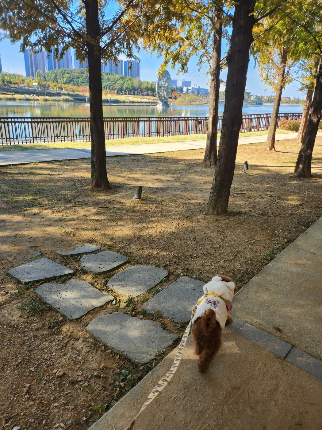 둘레길도 멋지고, 조형물도 예쁘고, 조경도 아주 잘 되어 있었어요. 무엇보다 테라스가 있는 가게들이 있어서 강아지와 차 한잔 하기도 좋았습니다. 신도시여서 세련미가 폴폴 나더라요. 봄에는 벚꽃이 장관을 이룬다는데 봄에도 꼭 가봐야겠어요.