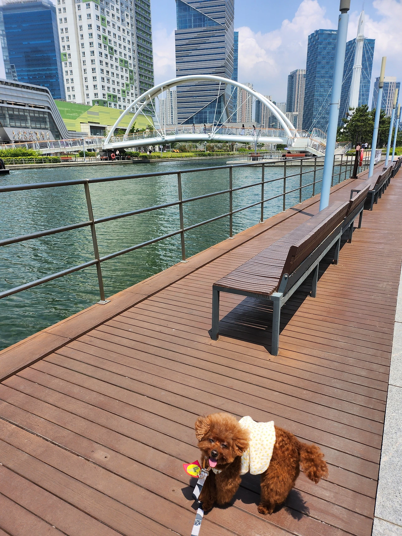 >>송도 센트럴파크 호수공원은 쿵이를 만나러 간 곳이에요. 송도, 이름만 들어도 어쩐지 엄청 화려하게 느껴졌는데 정말 미래도시에 온 것처럼 건물 하나하나 다 멋지고 인공호수라고 하지만 호수공원도 잘 조성해 놓았더라고요. 송도주민들은 참 좋겠다, 저 집은 얼마나 비쌀까 라며 화려함을 부러워하다 문득 발아래 저를 바라보고 있는 갈색강아지가 눈에 들어오더라고요. 그래 나는 자연이 만든 사랑스러움의 결정체와 함께 살지 싶은 거예요. (정신승리 같기도...)