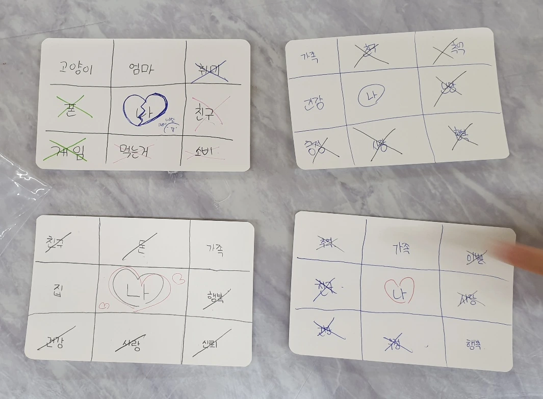결과는 사진과 같이 대부분 나, 가족, 집, 행복 순서였다.
