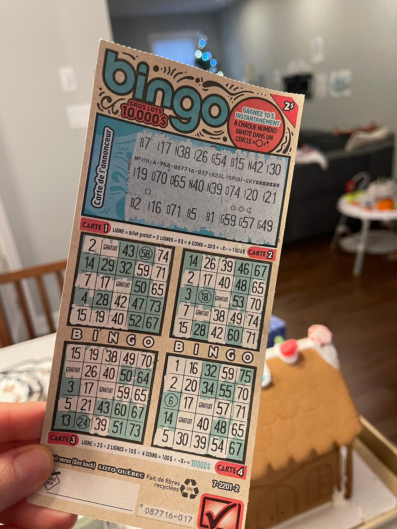 드라마 '에밀리 파리에 가다'에서 주인공 에밀리가 크리스마스에 어글리 스웨터를 입고 프랑스사람들에게 비웃음을 당하던 장면이 떠오른다. 크리스마스 아침에 등장한 스캇은 파란색 루돌프 모양의 어글리 스웨터 차림이었다. 그는 하루 종일 얼마나 오래된지 판단이 되지 않는 그 낡은 스웨터를 입고 행복해했다. 그는 그 모습 그대로 스마일맨이 되어 우리에게 크리스마스 양말을 나누어 주었다. 우리는 YJ의 부부가 미리 준비해 둔 양말을 개봉하며 크리스마스 아침을 시작했다. 신기했던 것은 캐나다에서 크리스마스 선물로 즉석복권을 나눈다는 사실이었다. 크리스마스 아침의 복권 개봉은 또 다른 재미를 더해줬다. 빅키는 한국 돈으로 몇만 원이 당첨! 나는 꽝이다.