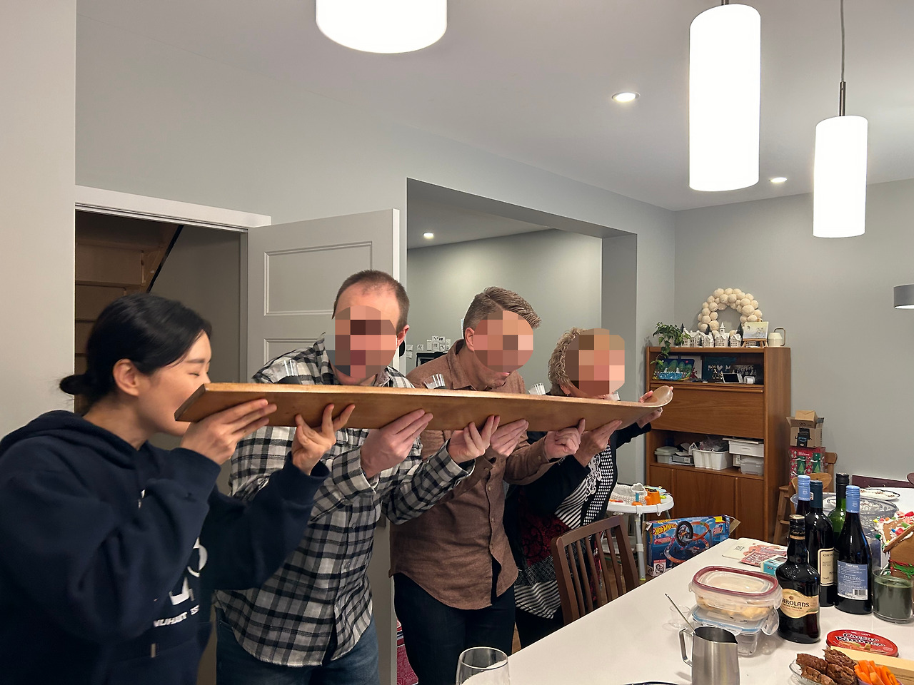 캐나다의 술 문화는 마치 집에서 가족과 함께 한두 잔씩 가볍게 즐기는 듯한 분위기였다. 스캇은 술잔을 고정시킬 수 있는 나무 스키를 들고 개구쟁이 같은 미소를 지으며 등장했다. 손님이 방문하면 스키에 술잔을 놓고 함께 마시는 것이 그들의 전통이라고 말했다. 그들은 자연스럽게 자리를 잡았고, 손님인 내 자리도 있었다. 마치 다 같이 해야 하는 의식처럼, 해맑게 웃는 그들의 얼굴을 보며 나도 웃음을 참을 수 없었다. 스캇은 "동시에 마셔야 해!"라고 회치며, 모두가 긴장된 웃음을 머금은 채 서서 준비를 하게 만들었고, 드디어 "시작!"이라고 외치자 동시에 의지와는 상관없이 술잔은 우리의 입으로 돌진했다. 내가 마시는지 흘렸는지 유쾌하게 감시하는 스캇의 모습은 카메라에 찍혀있었다. 그 장면을 볼 때마다 웃음이 나와 지금도 뱃속이 간질거릴 정도로 즐거운 기억으로 남아 있다.