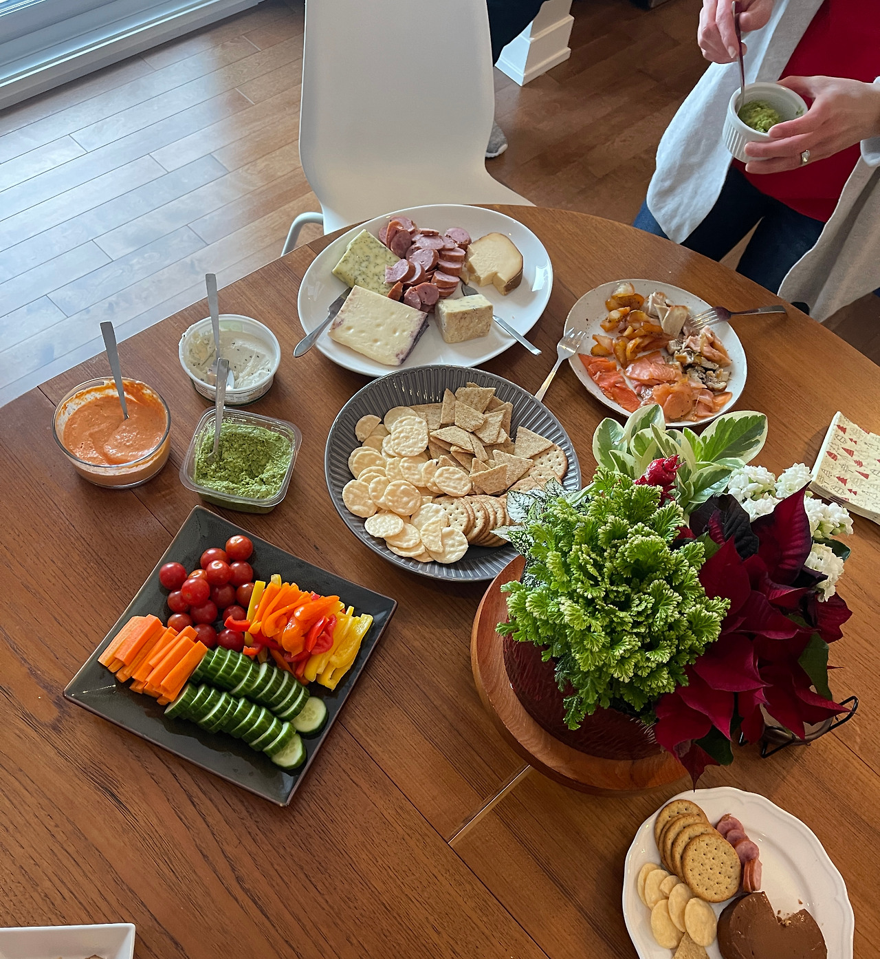 가족들이 모두 모이자, 간단한 스낵과 치즈로 크리스마스 가족 모임이 시작되었다. 테이블 위에는 다양한 간식과 음료가 놓였고, 모두가 자연스럽게 모여 앉아 이야기를 나누며 웃음꽃을 피웠다. 화기애애한 분위기 속에서 서로의 안부를 묻고, 아이들은 크리스마스 장난감을 들고 뛰어다니며 즐거워했다. 그렇게 소박하고 따뜻하게 시작된 가족 모임은 크리스마스의 진정한 의미를 다시금 느끼게 해 주었다.