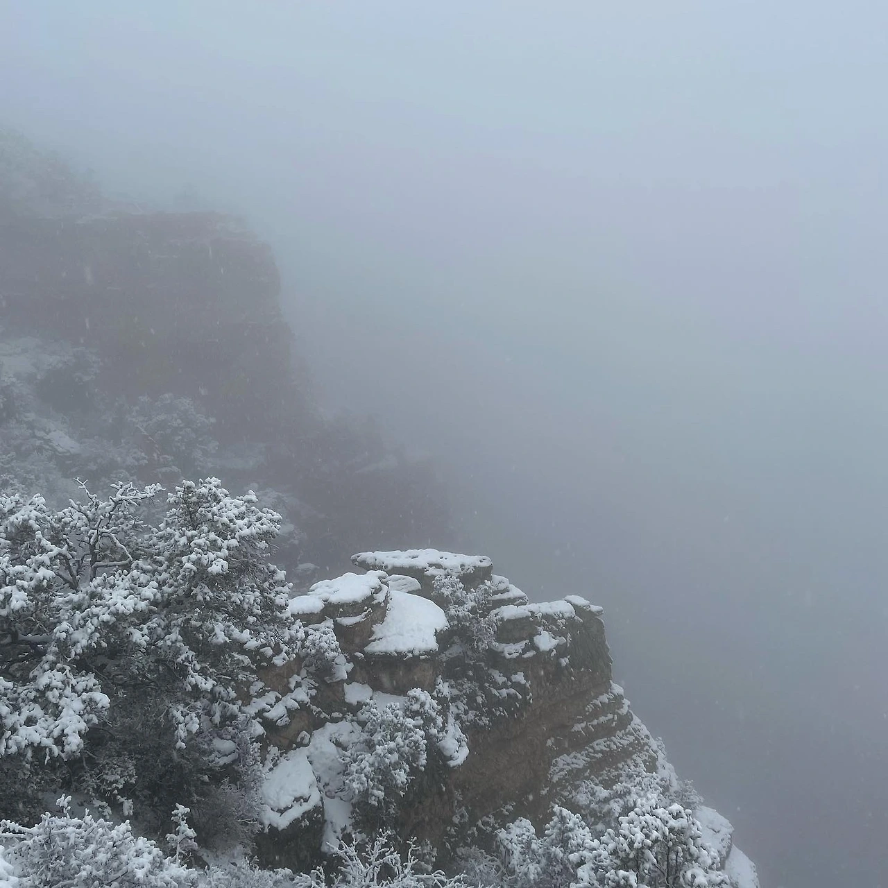가이드는 오늘 그랜드캐니언을 보기 어려울 것 같다고 했다. 풍경은 비와 눈이 와도 볼 수 있지만 그보다 더 풍경을 가리는 것은 안개라고 했다. 가이드를 따라 내려간 그랜드 캐니언은 누가 앞에 연기를 가득 뿌린 것 같이 주변의 눈 말고는 아무것도 보이지 않았다.