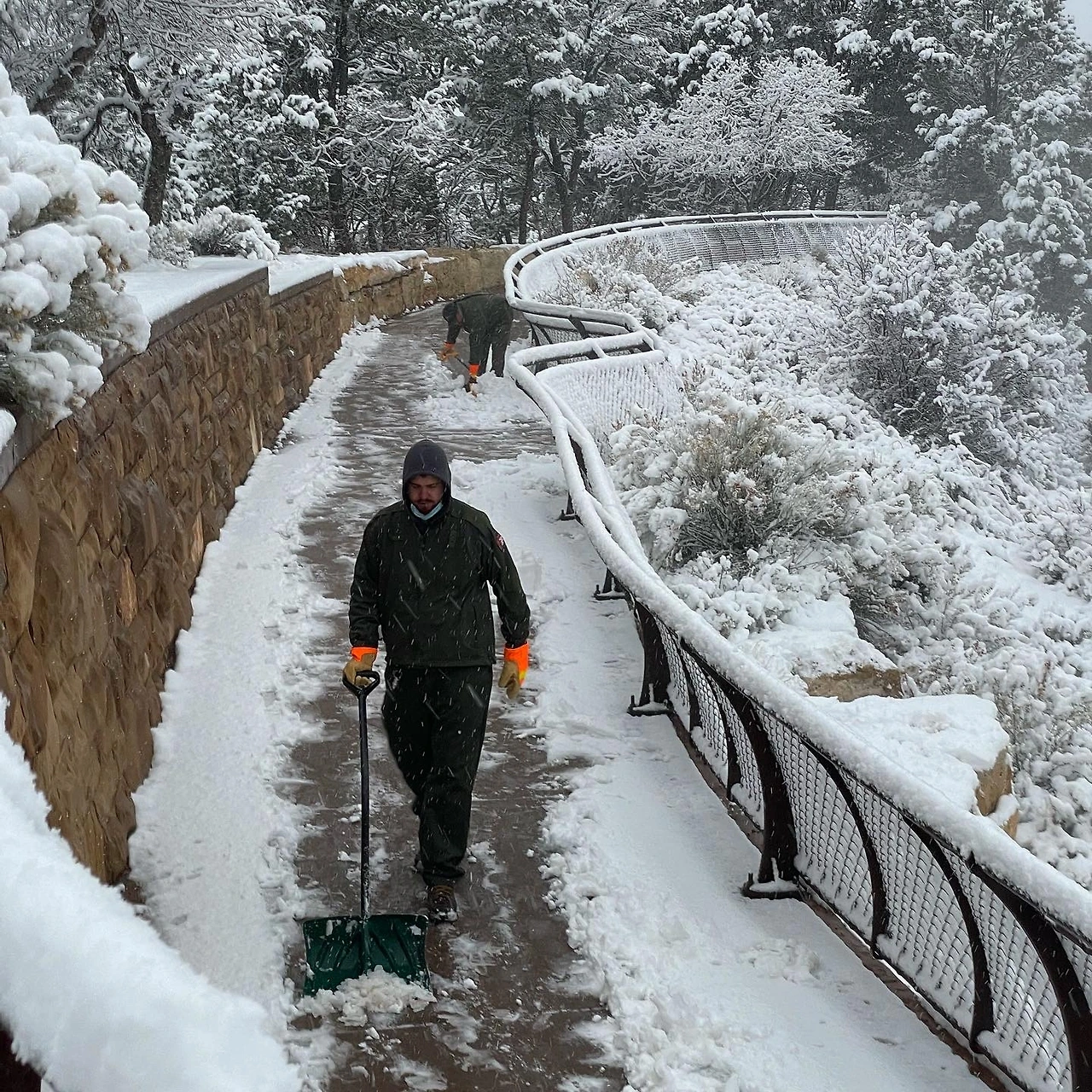 그랜드캐니언에 도착하니 눈이 펑펑 내렸다. 신발에 눈이 다 들어올 정도로 수북하게 쌓였다. 폭설이었다. 국립공원 직원들은 분주하게 눈을 정리했다. 거대한 차량으로 눈을 치우고 녹였다.