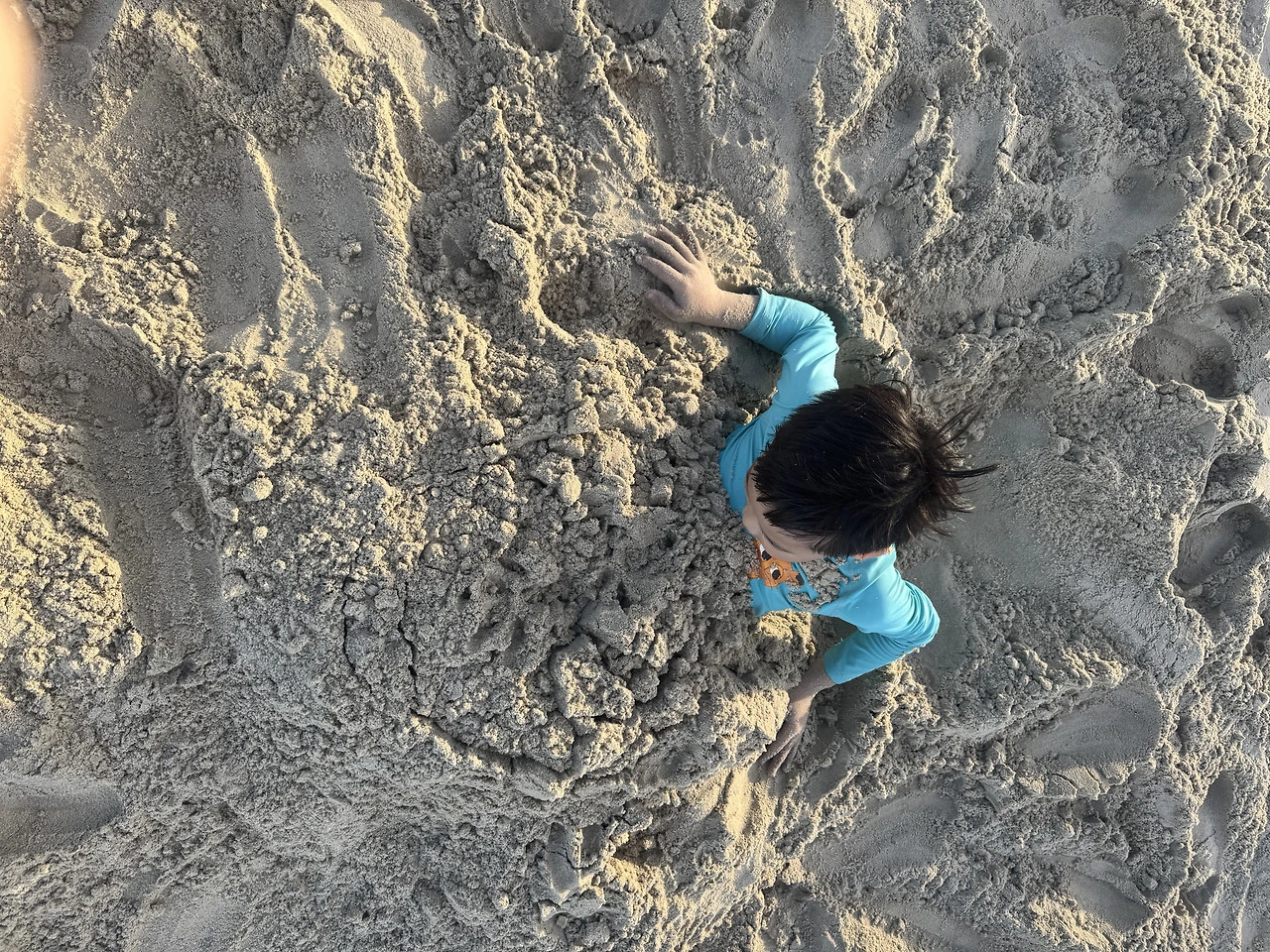 해변에서 어제 본 모래와 오늘 만난 모래가 다를 리 없건만, 아이의 표정은 매 순간 처음인 듯 새롭다. 무언가를 배워야 한다는 강박이 없는 아이의 세상에선, 노는 것 자체가 가장 큰 배움이라는 걸 아이의 웃음소리를 들으며 깨닫는다.
