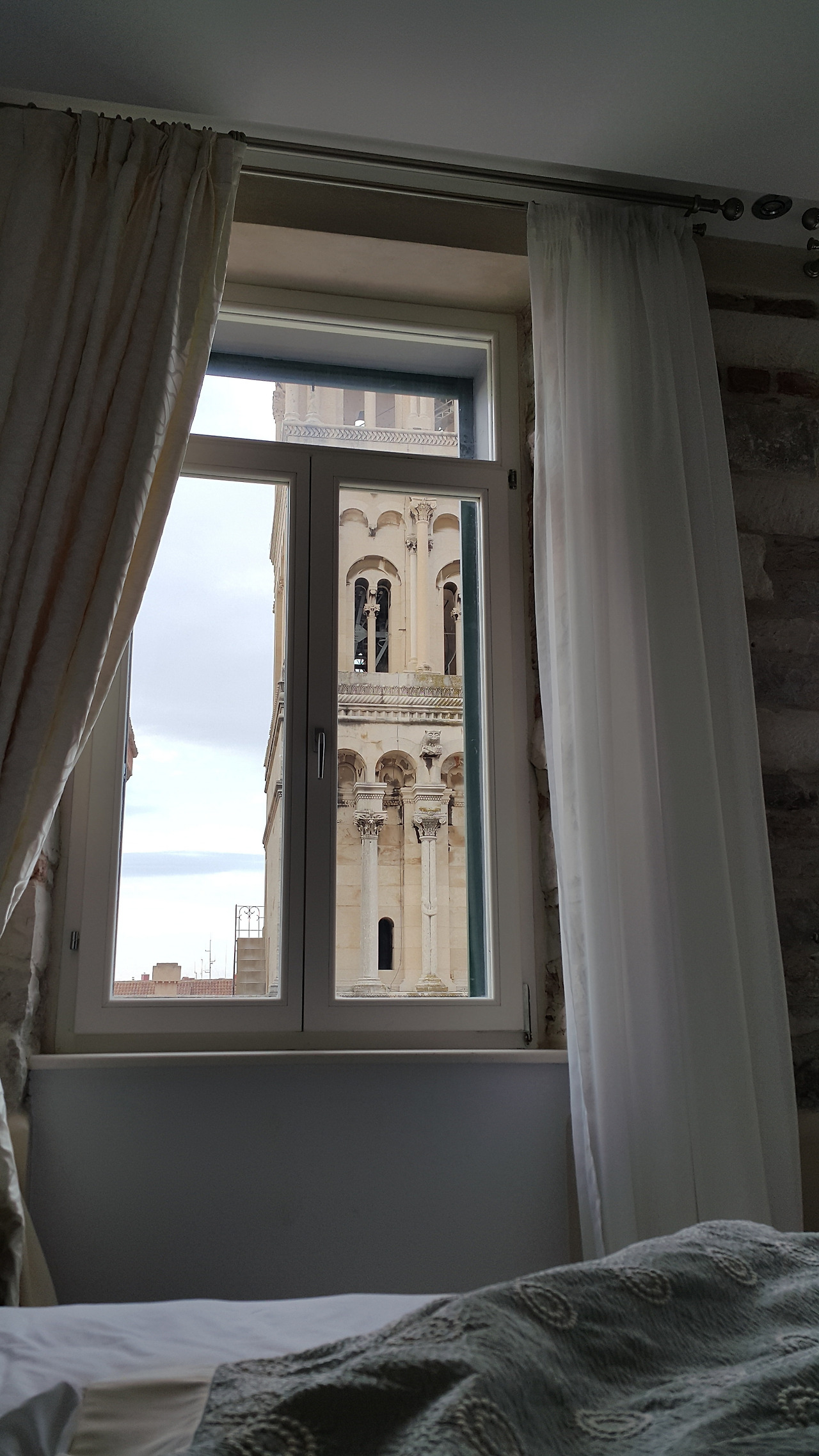시민들의 피난처에서 삶의 터전이 되어버린 이 궁전 안에는 호텔, 레스토랑, 바, 숍 등 모든 것이 자리 잡고 있다. 고요히 잠들어 있는 다른 곳들의 성이나 궁전과는 달리 아직까지 살아 숨 쉬는 활기찬 성 안의 모습은 정말 색달랐다. 우리가 머물렀던 궁전 안의 호텔에서는 13세기에 짓기 시작해 300년에 걸쳐 완성되었다는 성 도미니우스 성당의 종탑이 보였다. 위 사진 속 풍경은 아침에 눈을 뜨자마자 내 눈 속에 비친 그림.