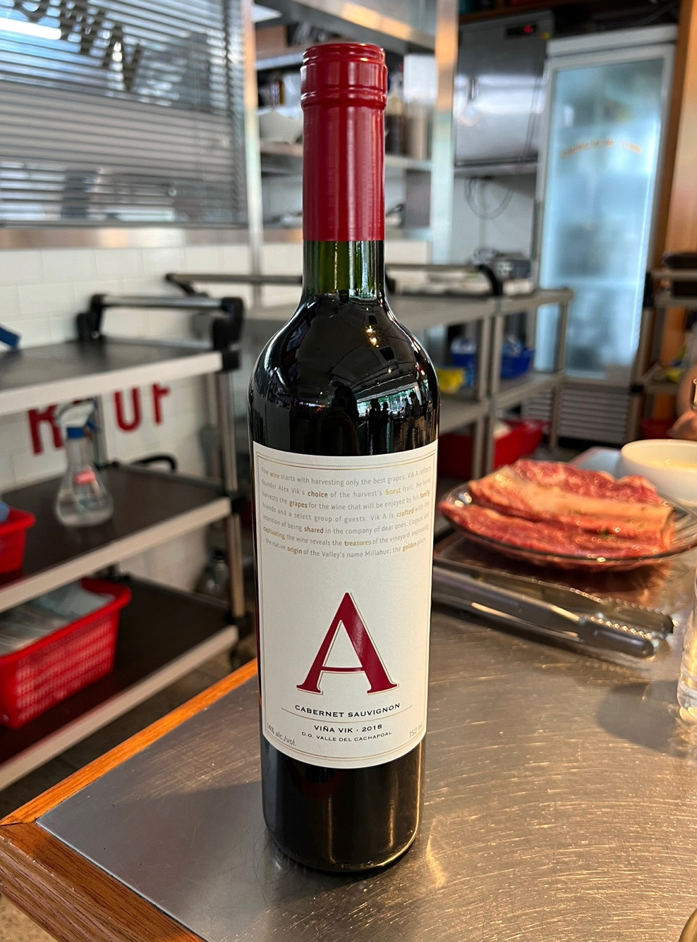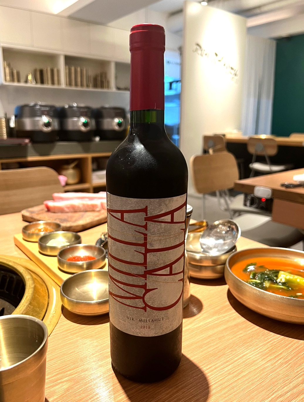 삼겹살과 함께한 빅(Vik)의 밀라 칼라(Milla Cala). 빅은 2004년 칠레에서 시작된 신생 와이너리다. 2년간의 연구 끝에 황금의 땅이라 불리는 안데스 산맥 기슭의 카차포알 밸리(Cachapoal Valley), 밀라휴(Millahue)에 자리 잡았다. 샤또 마고(Chateau Margaux)의 와인 메이커였던 크리스티앙 발라호(Cristian Vallejo)가 지금은 이곳의 와인메이커. 보르도 블렌드 스타일의 와인을 만든다.