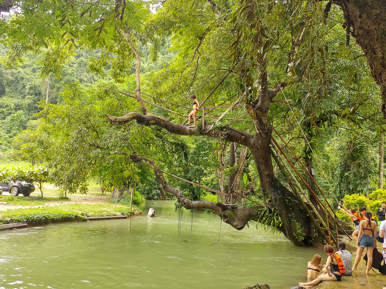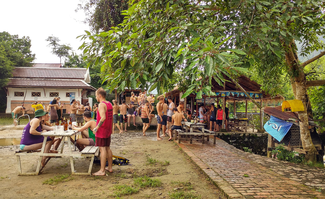 방비엥에서는 자연 안에서의 놀이 말고는 딱히 할 일이 없다. 오후에 도착한 첫날엔 블루라군에서 줄을 잡고 물에 뛰어드는 타잔놀이를 하며 시간을 보냈고(다이빙 도전엔 실패했다), 둘째 날엔 레포츠를 즐겼다. 높은 곳에 올라가 줄에 대롱대롱 매달려 여기에서 저기로 이동하는 짚라인, 좁다란 배에 앉아 노를 저으며 강을 건너는 카약, 튜브를 타고 유유자적 강을 따라 내려가는 튜빙.