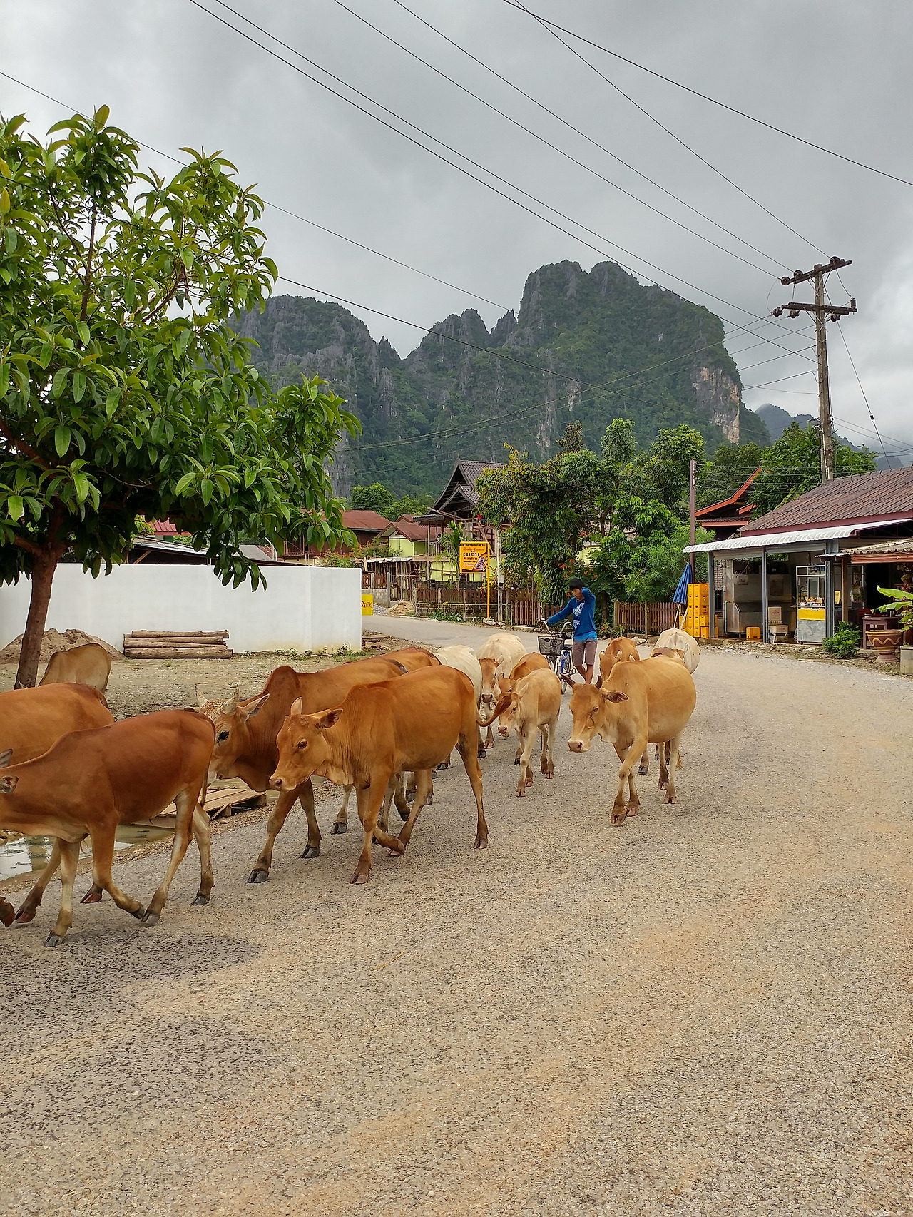 논뿐만이 아니다. 방비엥을 들어설 때부터 내 시선을 사로잡은 이국적인 산이 더 멋져 보인다. 거대한 삼각형이 겹겹이 쌓여있는 우리나라의 산과는 달리 동글동글한 봉우리들이 우뚝 솟아 있는 이곳의 산은 꼭 산신령이 살고 있을 것만 같이 신비롭다.