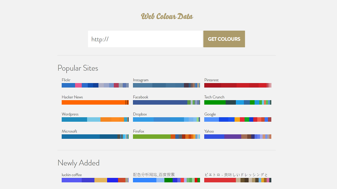 분석하고 싶은 웹사이트 주소를 입력하면 해당 사이트에서 사용된 컬러의 비율과 코드를 함께 알려줍니다. 또한 입력한 웹사이트와 비슷한 컬러 구성의 웹사이트를 추천해줍니다.