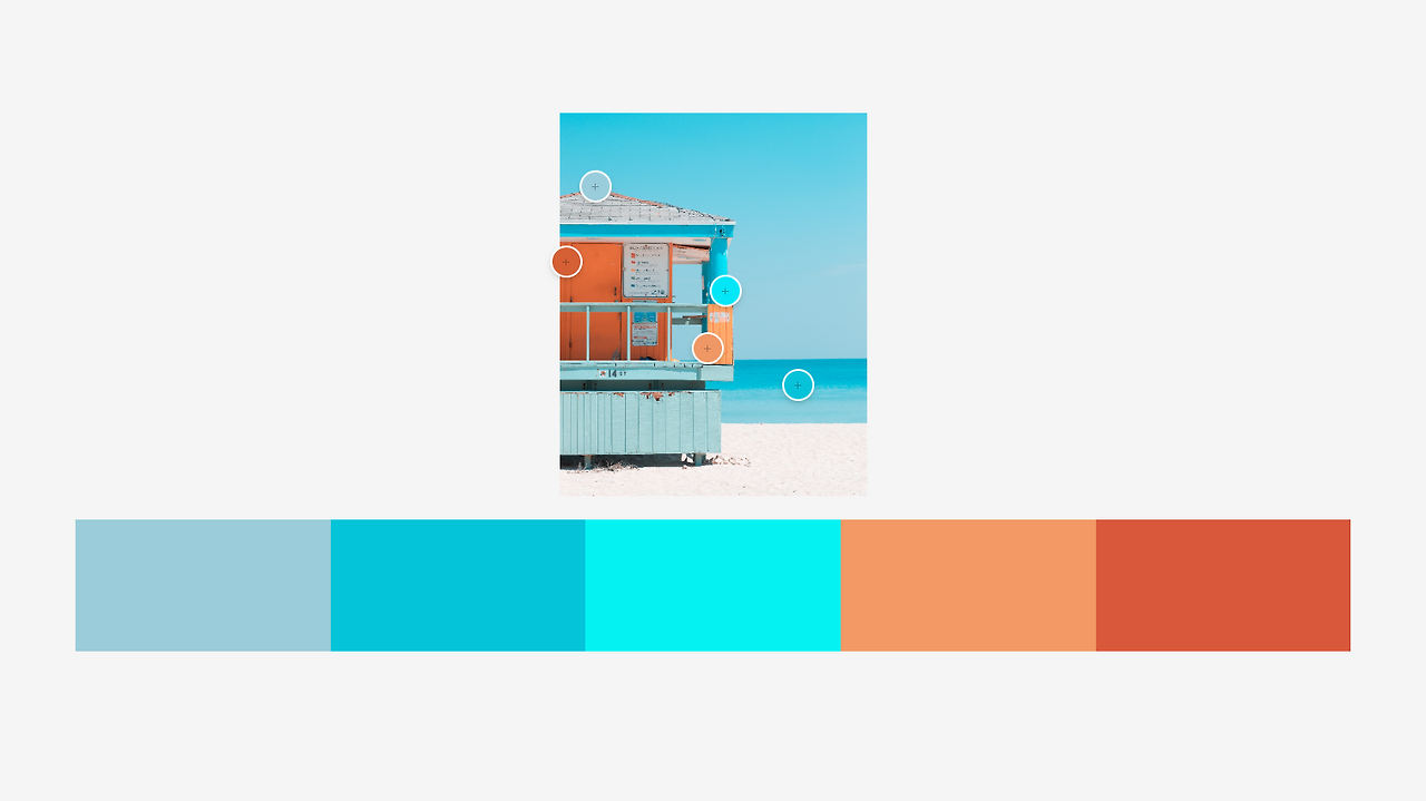 원하는 이미지를 업로드해 이미지의 컬러를 바탕으로 배색을 만들 수도 있으며, 마음에 드는 컬러를 가진 이미지의 컬러를 활용하고 싶을 때 유용합니다.