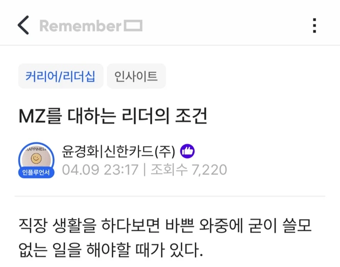 리멤버 커뮤니티 원본 글 보기 > MZ를 대하는 리더의 조건