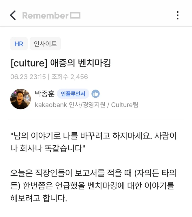 리멤버 커뮤니티 원본 글 보기 > [culture] 애증의 벤치마킹