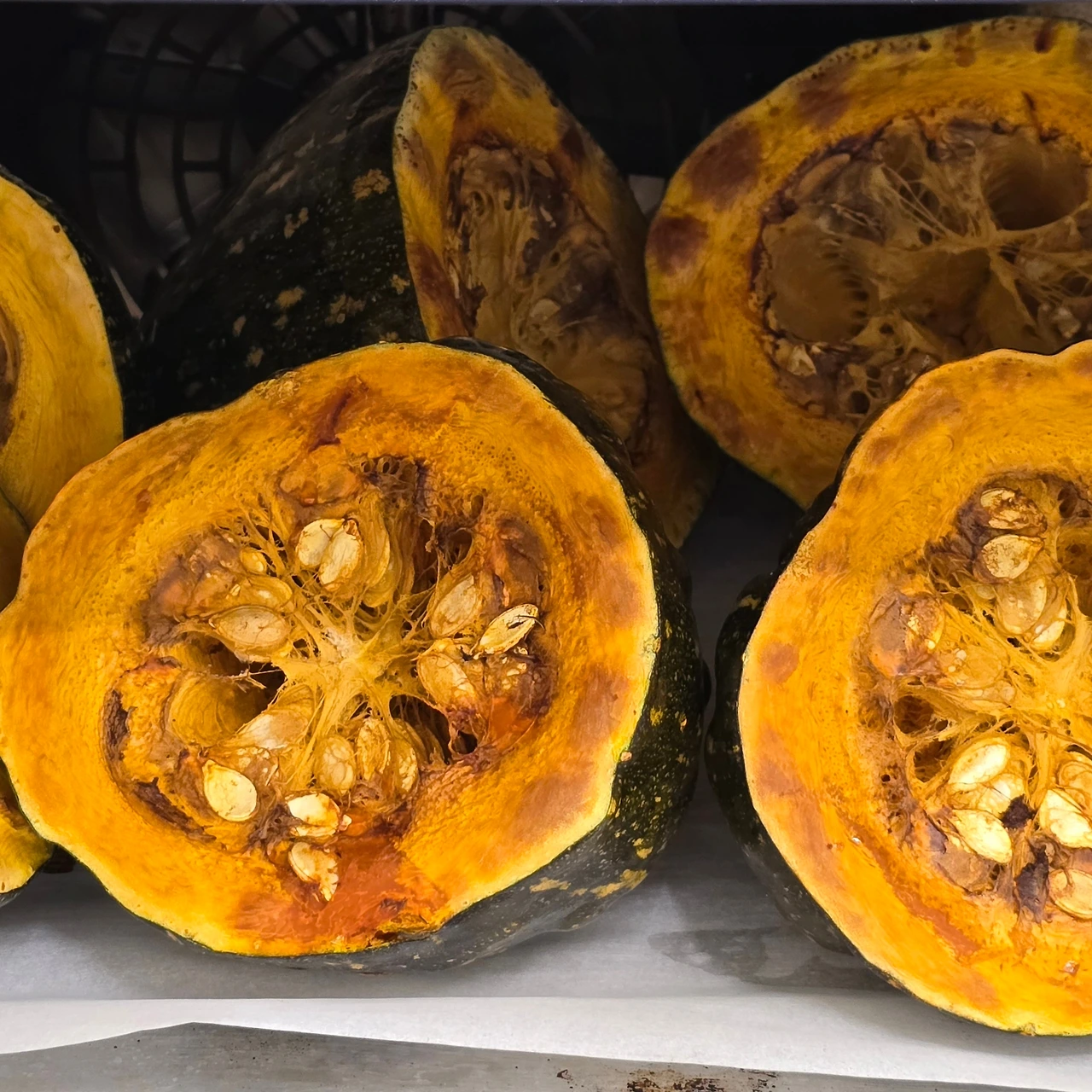 단호박은 오븐에 구워 단맛을 쫘악 끌어올린 뒤 껍질을 벗겨 큐브로 썰어 준비해 놓고요.