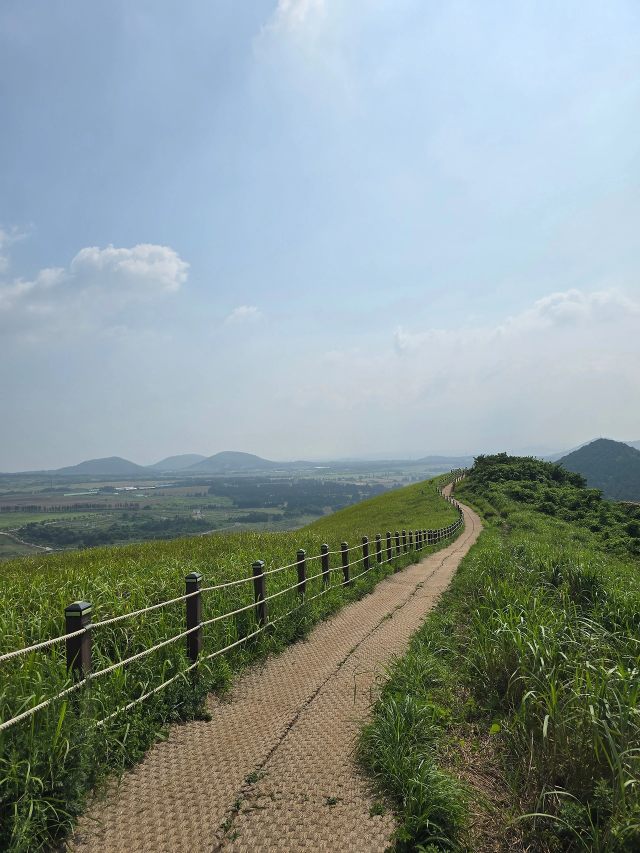 정상에 오르자 눈앞에는 제주의 서쪽 들판과