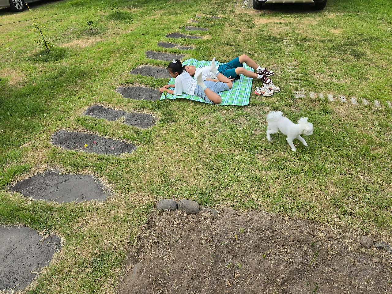 “나 마당에서 피크닉 할래.”