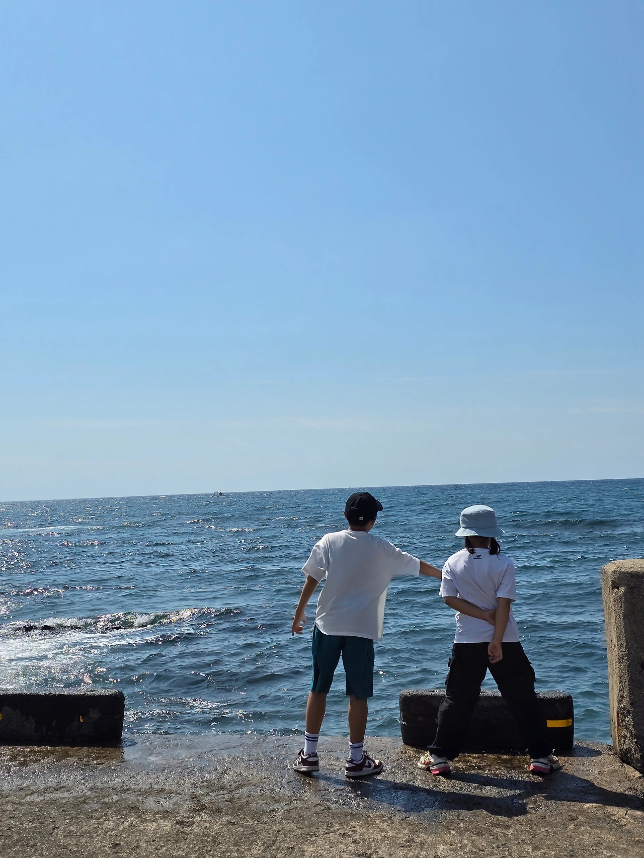 오후 세 시의 하늘은 눈이 시리도록 푸르고 깊었다. 쨍하게 내리쬐는 햇살 아래 바다는 생각보다 거칠었고 파도는 방파제를 넘나들며 힘차게 부서졌다. 아이들은 마치 처음 바다를 본 듯 소리 지르며 환호했다. 젖은 신발도, 튄 바닷물도 그저 신나는 놀잇감일 뿐이었다.