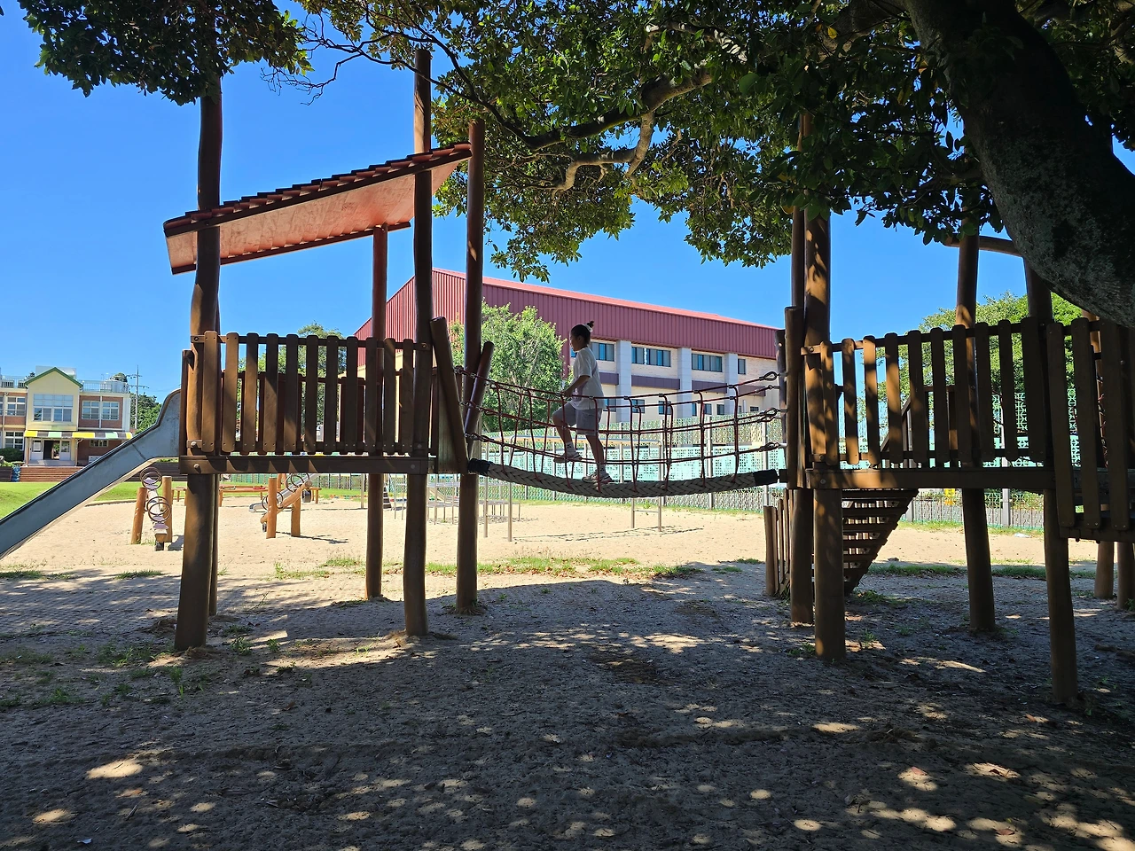 엄마에게 학교 구경을 시켜주겠다고 놀이터로 이끌었다. 나무그늘 아래 펼쳐진 놀이터는