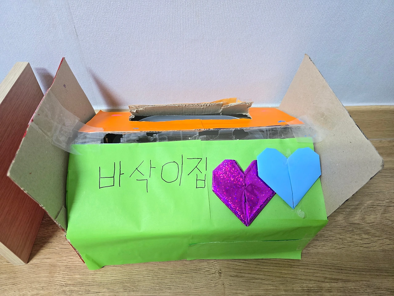 아이들은 택배박스를 재단하고 색을 입히고 구멍을 내며 달팽이의 새로운 보금자리 ‘바삭이 집’을 정성스레 완성했다. 이름을 지어주는 순간까지, 그들의 표정은 진지하면서도 설레었다.
