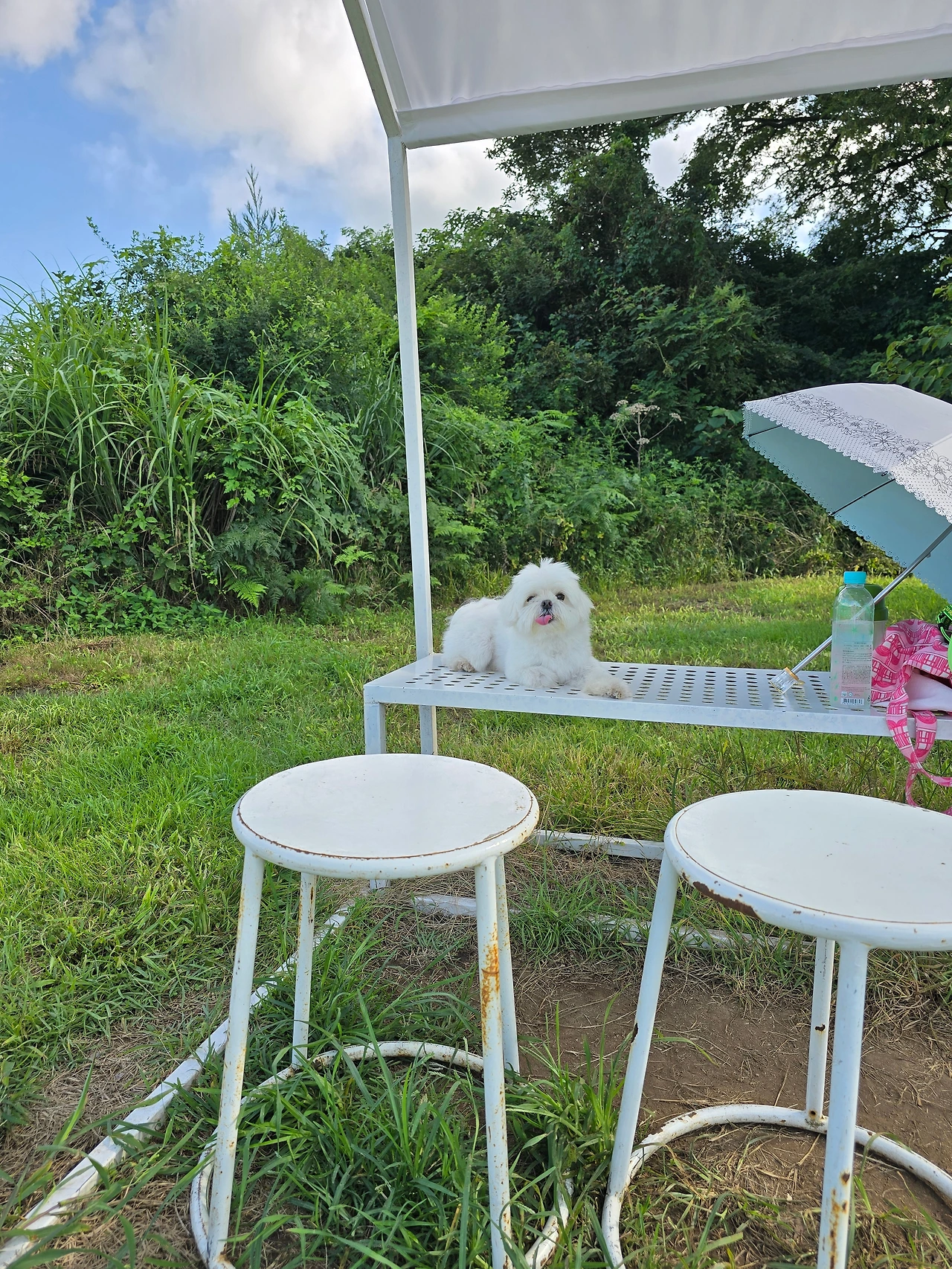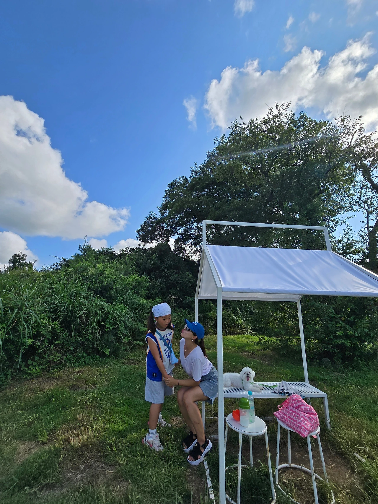 이번에는 코코도 함께 갔다. 낯선 냄새와 풀 내음을 맡으며 작은 발로 초원을 뛰어다니는 모습이 이곳 풍경에 새로운 색을 더했다. 남편의 빈자리는 묘하게 공허했지만 동시에 지금의 우리 셋과 한 마리의 강아지가 만들어내는 시간은 다른 결로 깊었다. 마치 삶이 우리에게 또 다른 조각을 내어준 듯.