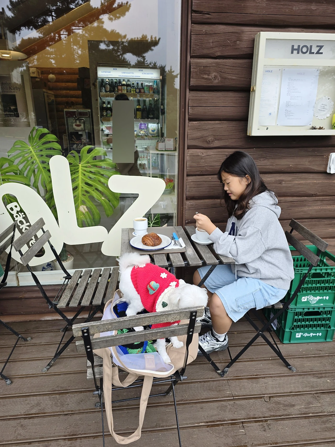딸과 코코를 데리고 근처 카페로 나가보기로 했다.
