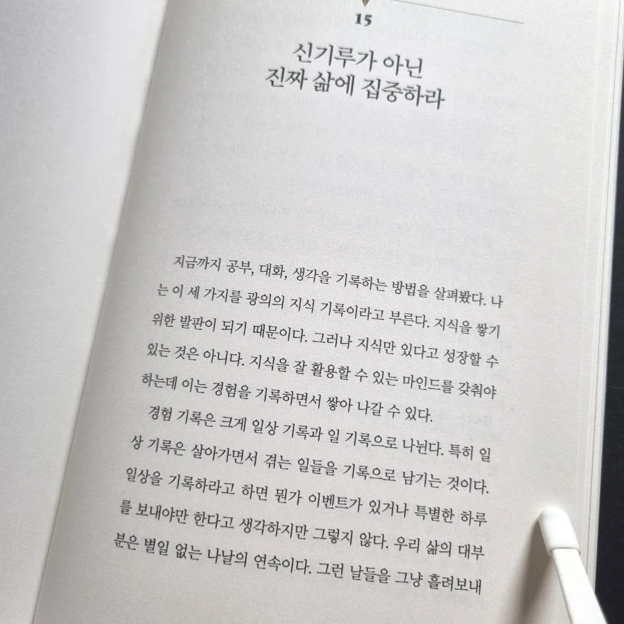 이 말을 읽고 단단히 묶여 있던 매듭이 풀리는 느낌이었다. 그래서 이제는 책을 읽을 때 완벽하게 이해하려 하지 않는다. 대신 나에게 남은 문장 하나, 생각 하나를 기록한다. 그것이 나만의 독서 노트이자 삶의 기록이 된다.