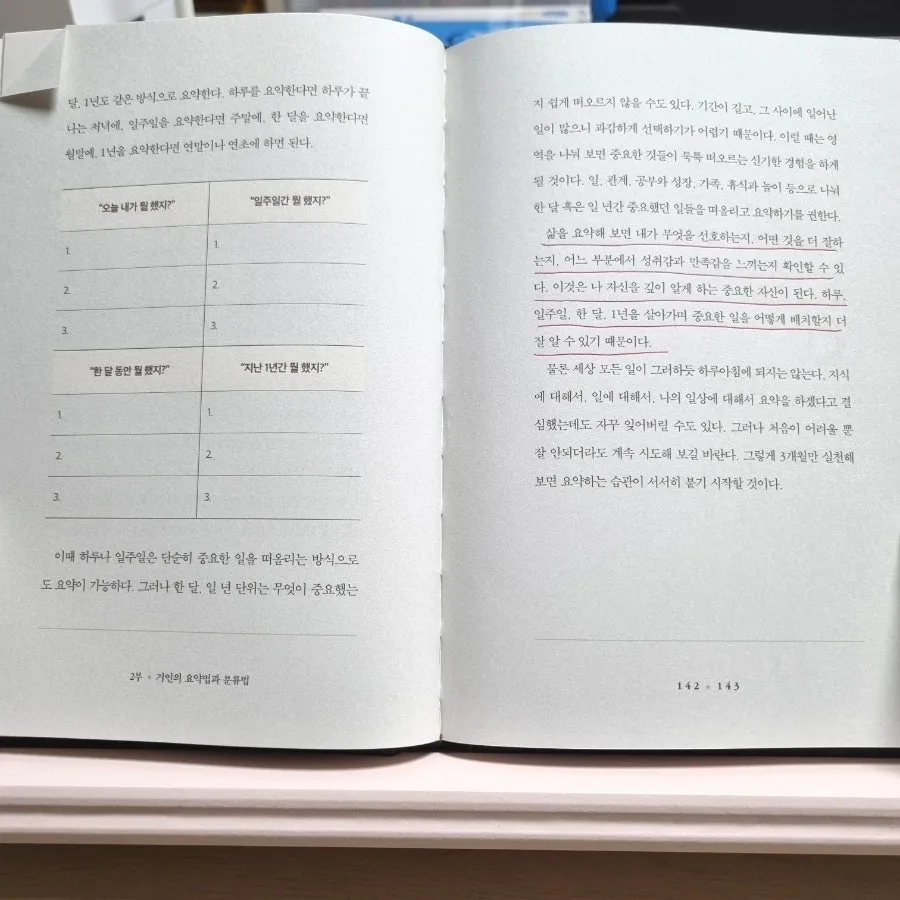 책의 중반부에서는 삶을 요약하는 습관이 등장한다.