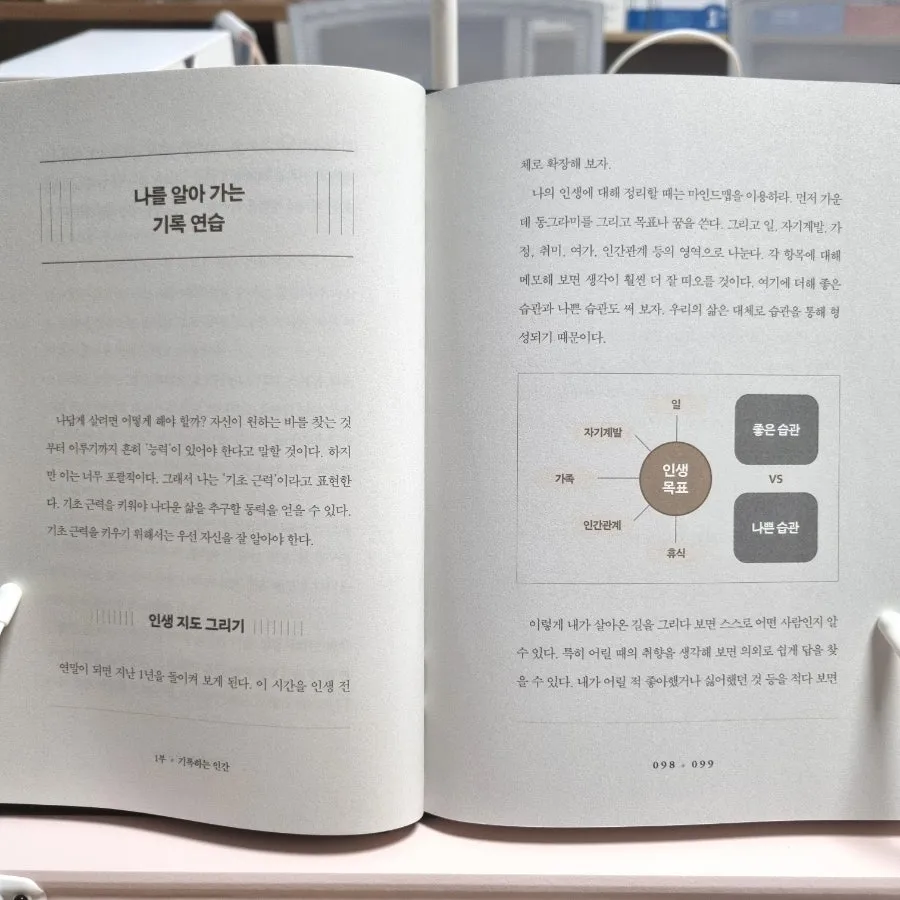‘공부, 일, 일상, 기록’이라는 네 개의 키워드를 중심으로 혼란스러운 마음을 체계화하는 방법을 알려주는 책이었다.
