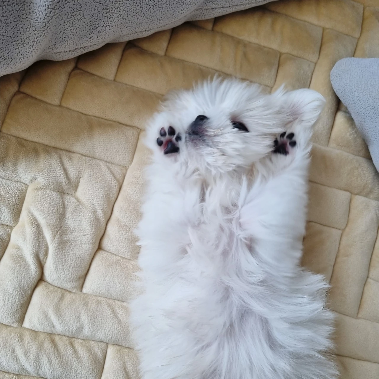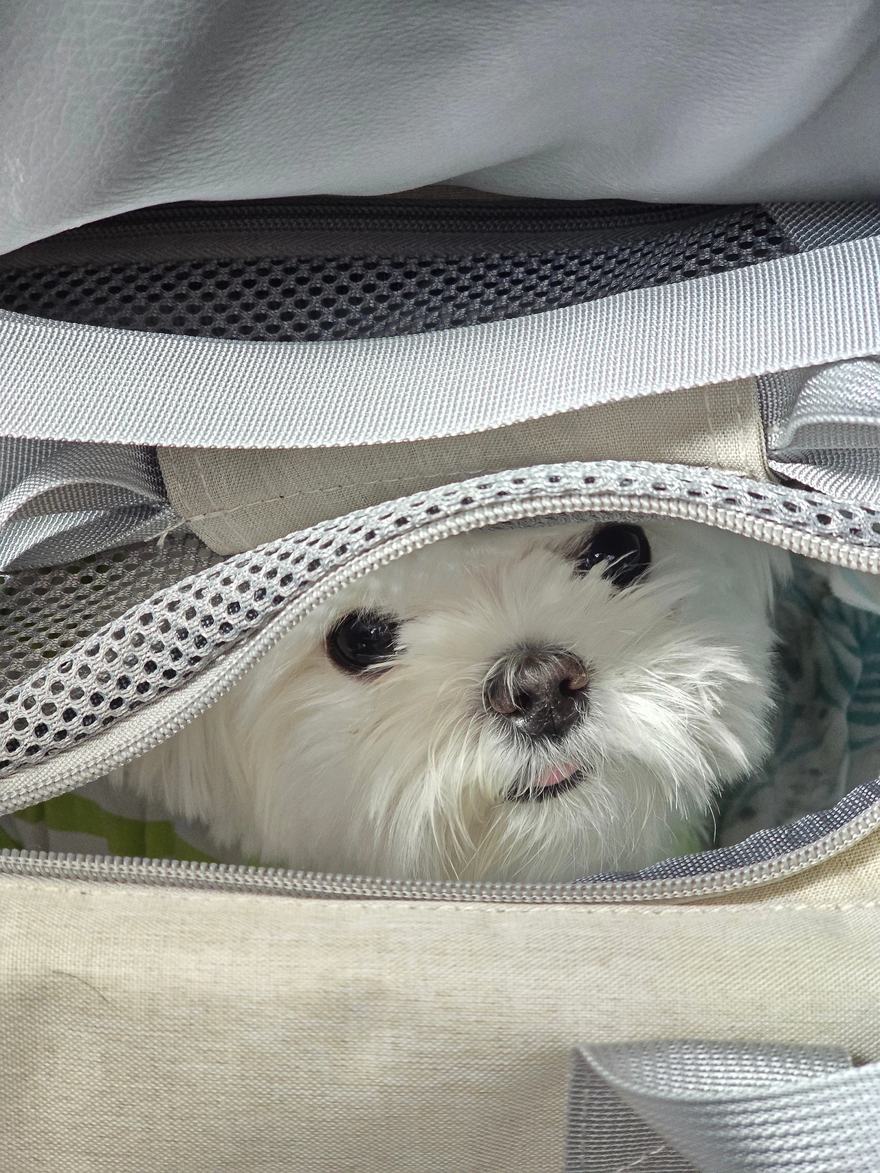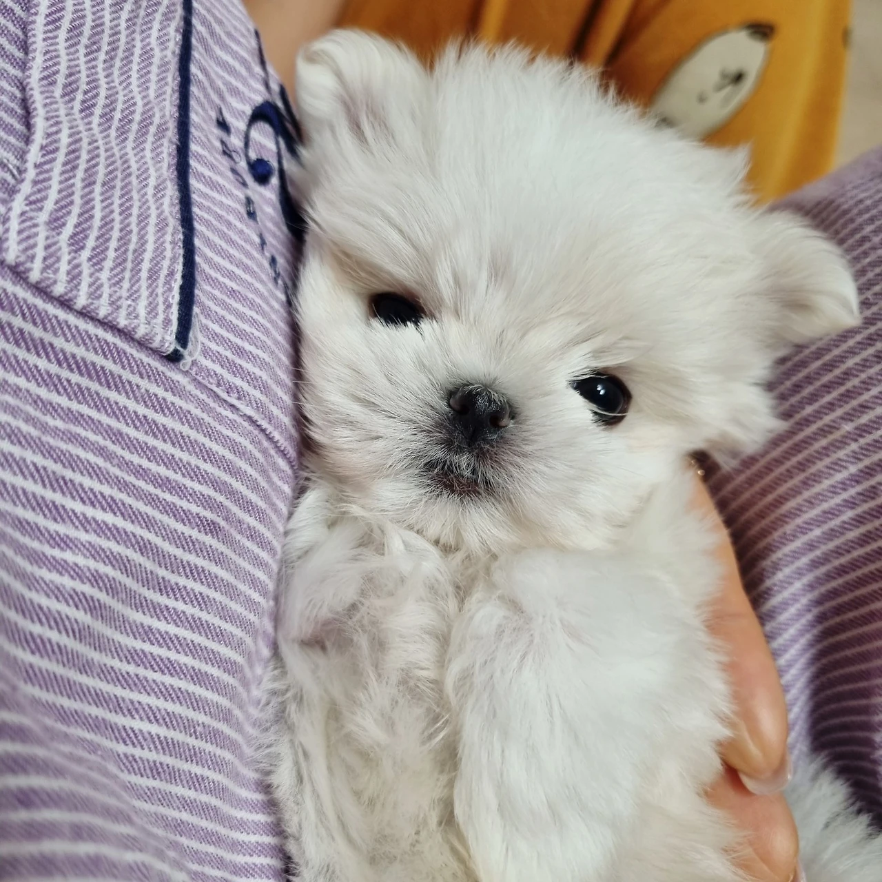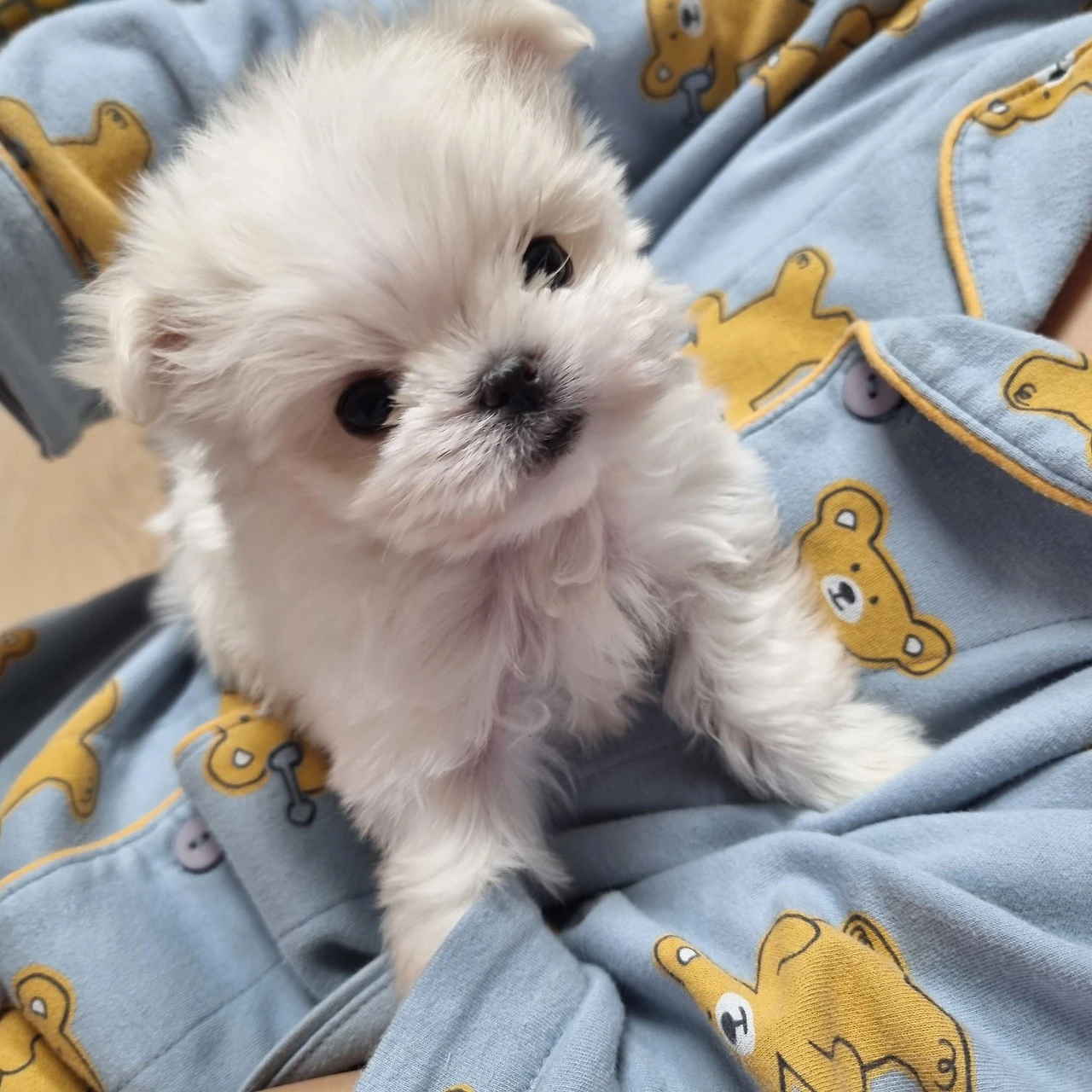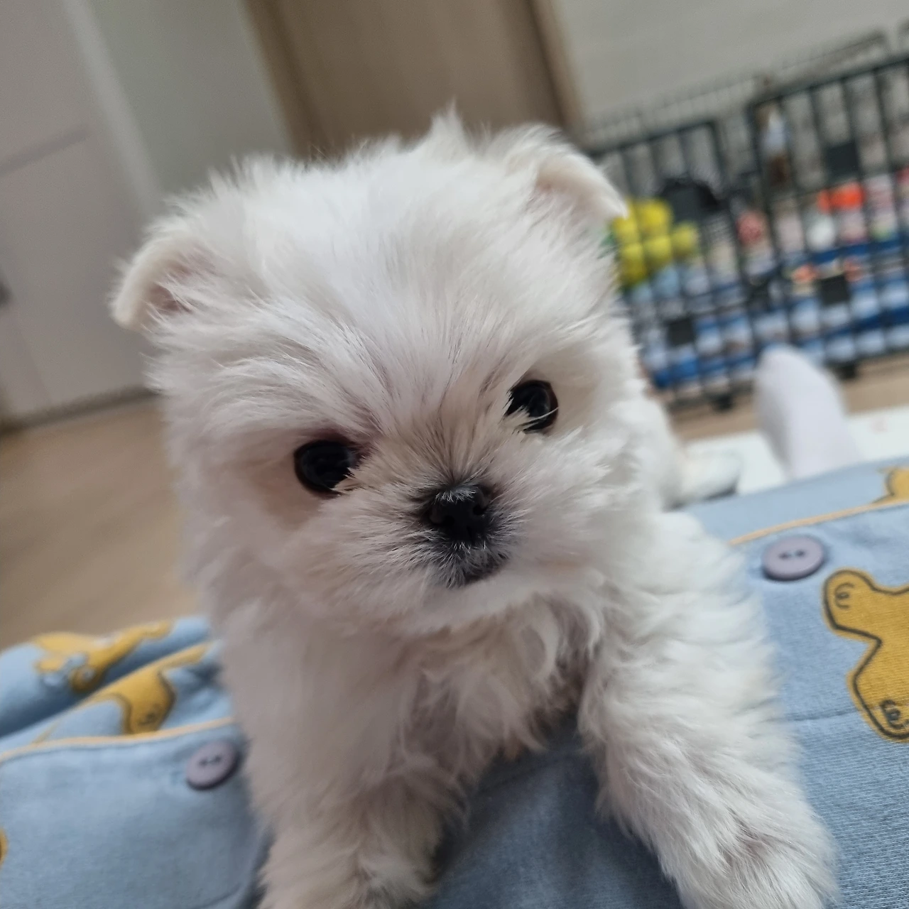 2년 전 어느 날, 육지에서 아이들과 시내로 가는 날, 반짝이는 유리문 너머에서 눈송이처럼 작은 말티즈