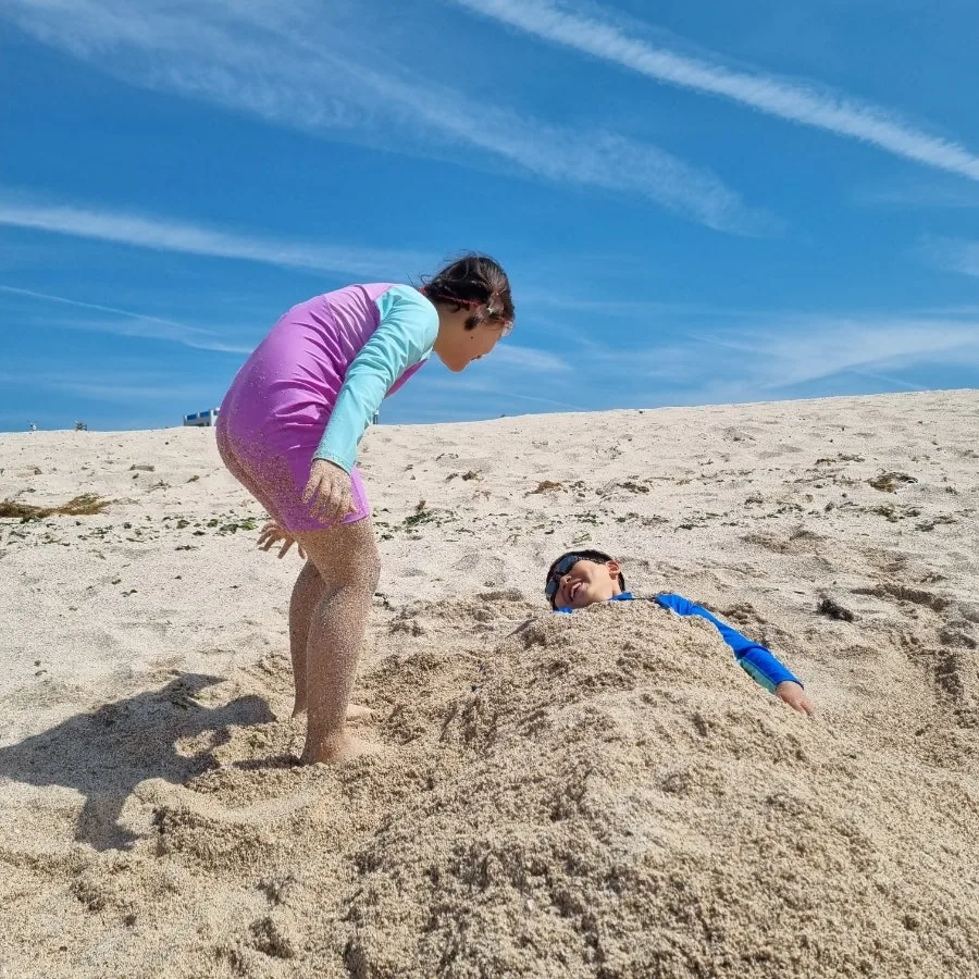 모래 위에 발자국을 찍으며 무한한 놀이를 창조했다.
