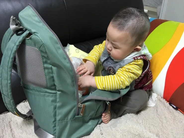 '젖병은 몇 개 챙겼어? 기저귀는? 물티슈는?'