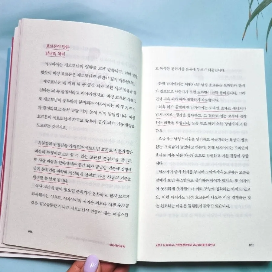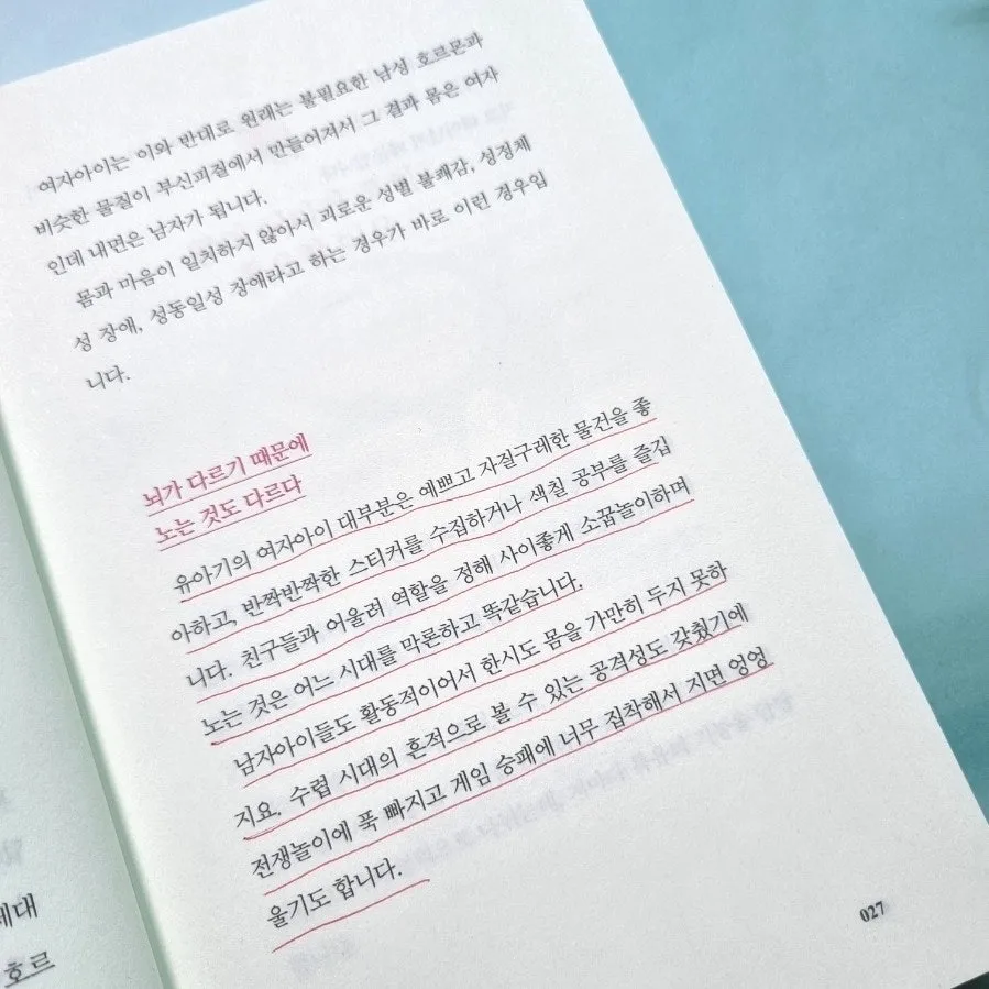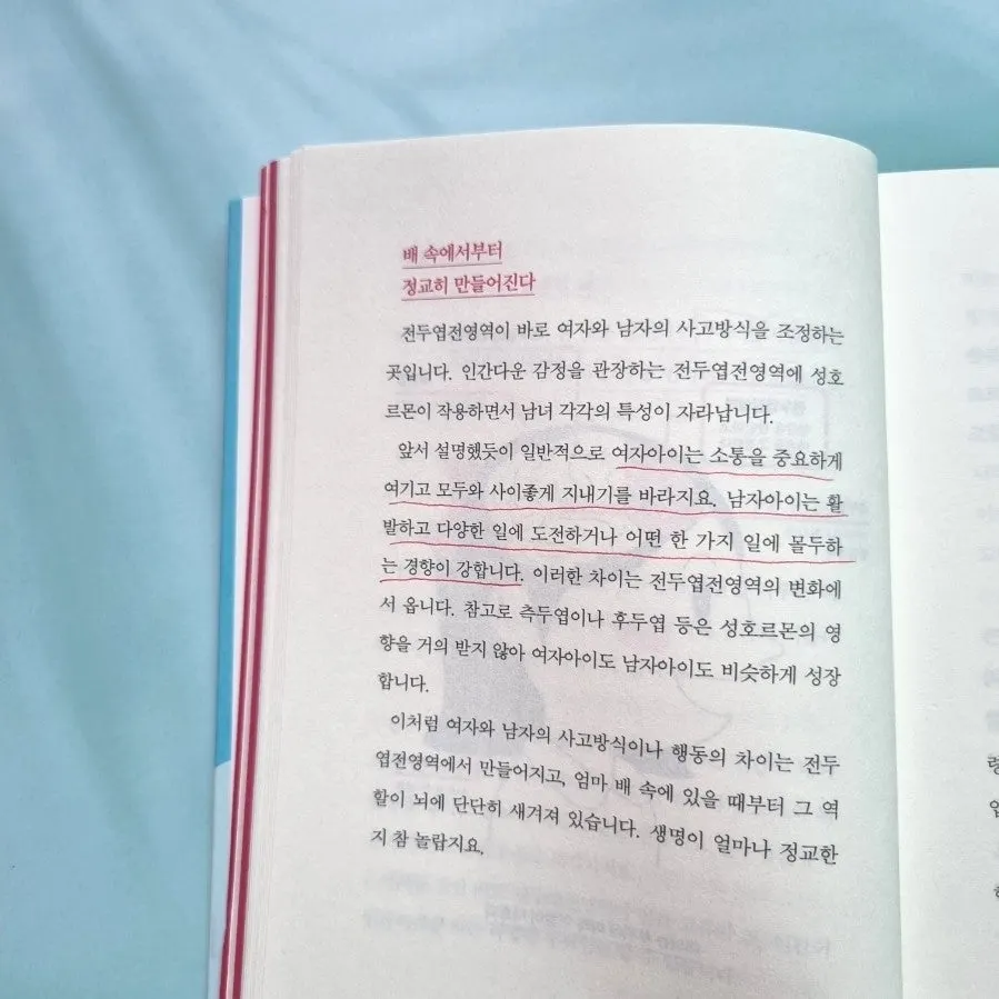 '여자와 남자의 차이는 태어나기 전부터 뇌에 명확하게 나타납니다. 어느 쪽이 더 뛰어난지 아닌지의 문제는 아닙니다. 구조가 다를 뿐이지요.'