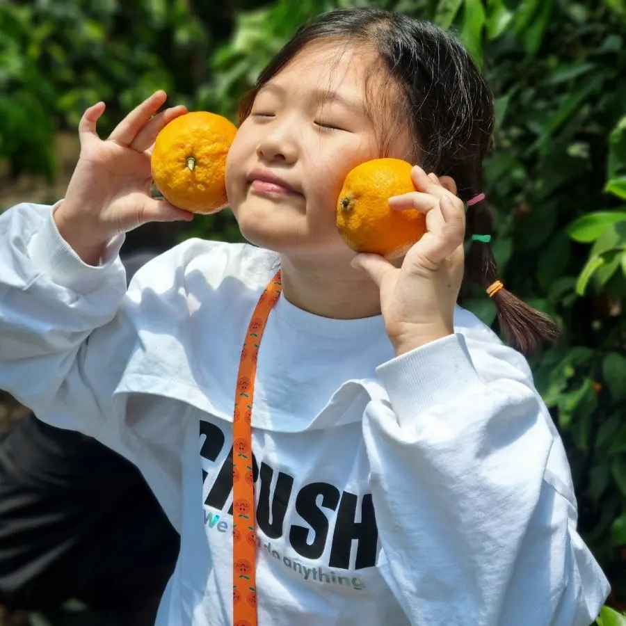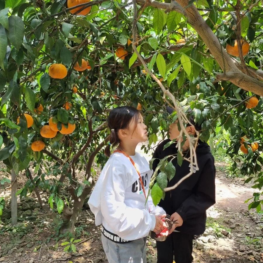 아이들 표정은 과수원 감귤 전부를 따버릴