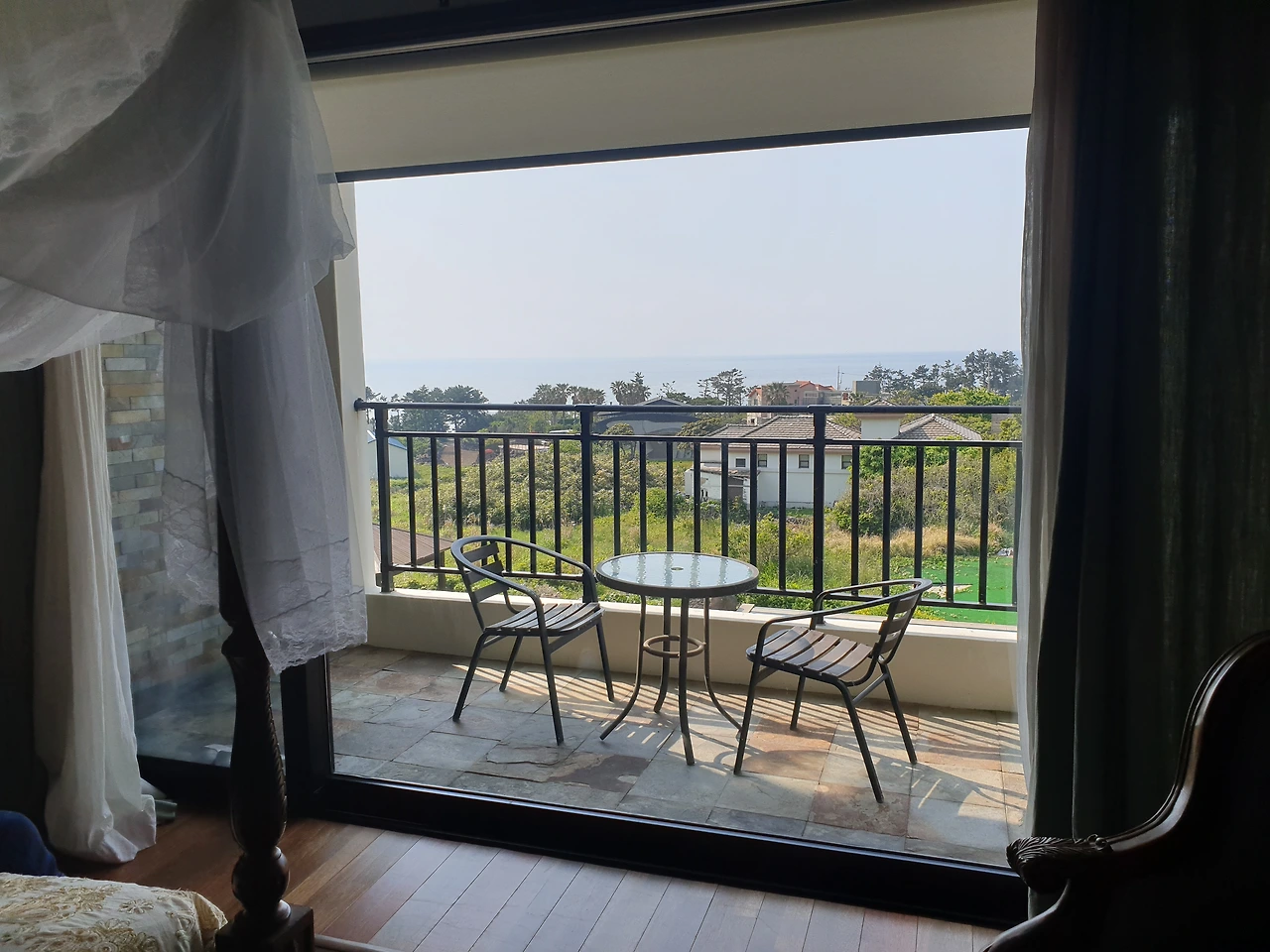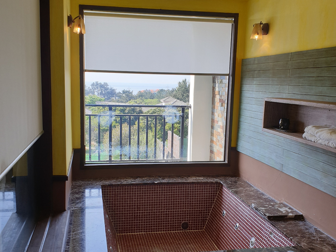 바다가 나란히 보였고 자쿠지 옆 창에는 따스한 햇살이