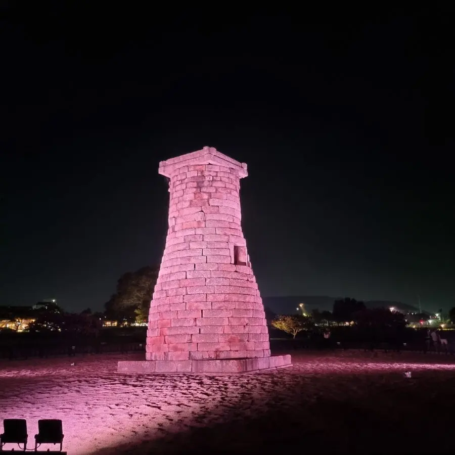 밤하늘 아래 조용히 빛나는 첨성대가 보였다.