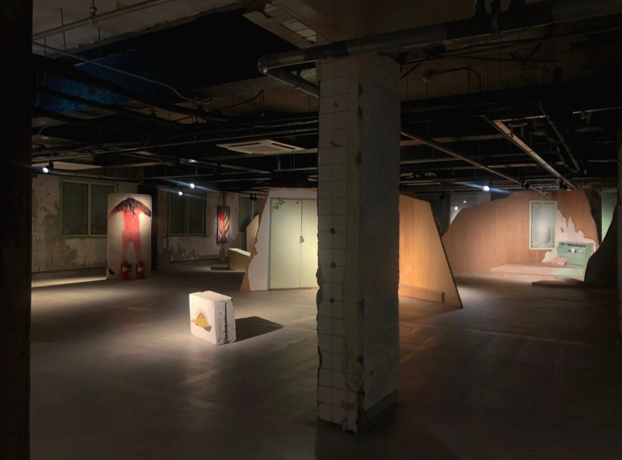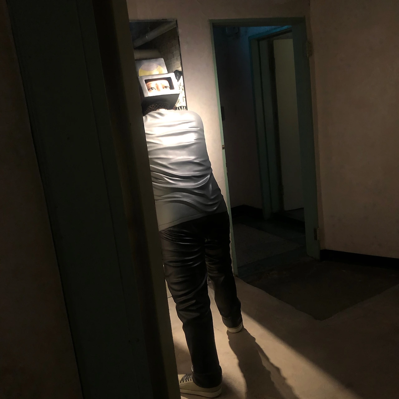 4층 전시관은 객실의 형태를 띤 공간들의 연속이다. 작은 볼륨의 공간을 한 작가의 작품으로만 채워놓으니 빠르게 환기되는 느낌이 있었지만... 보이지 않는 곳에서 들려오는 소리, 갑자기 나타나는 사람 형태의 작품, 조명이 없는 공간, 폐모텔의 남아있는 흔적들이 섞여 형성하는 분위기는 귀신의 집을 온 느낌이었다. 많이 무섭다.
