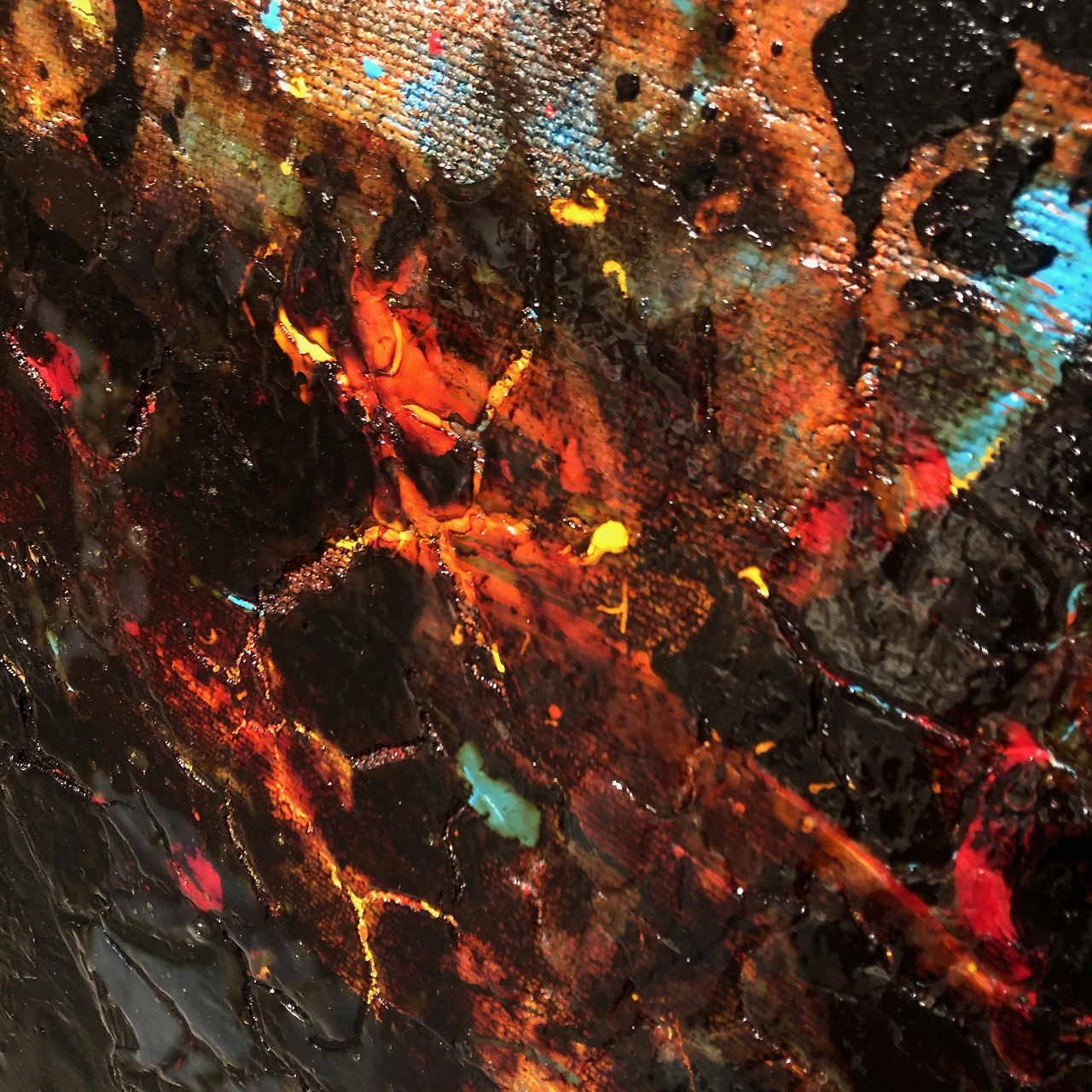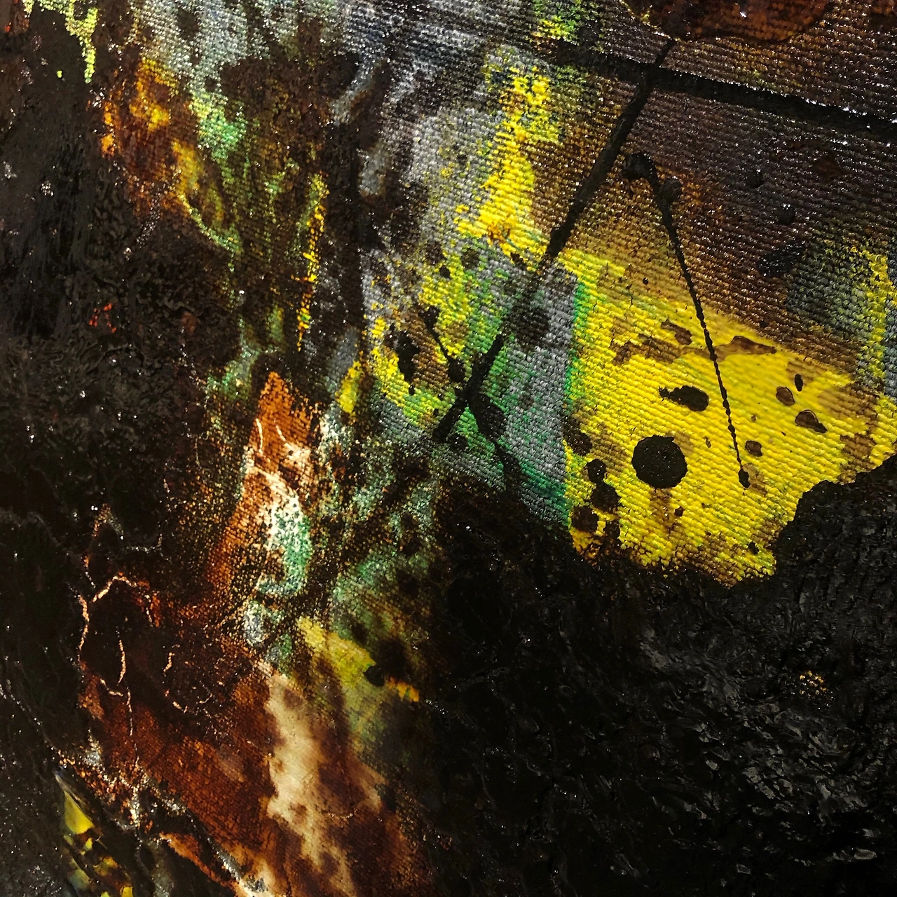 아크릴 물감 위에 커피로 채색하고 본드로 질감을 살린 작품에서는 커피! 아닌 커피? 의 향이 난다. 제주의 풍경을 담아냈다는 설명 덕분에 상상하는 재미가 있었다. 아크릴과 커피, 이질적인 재료들의 충돌이 이런 것인 것 같다.