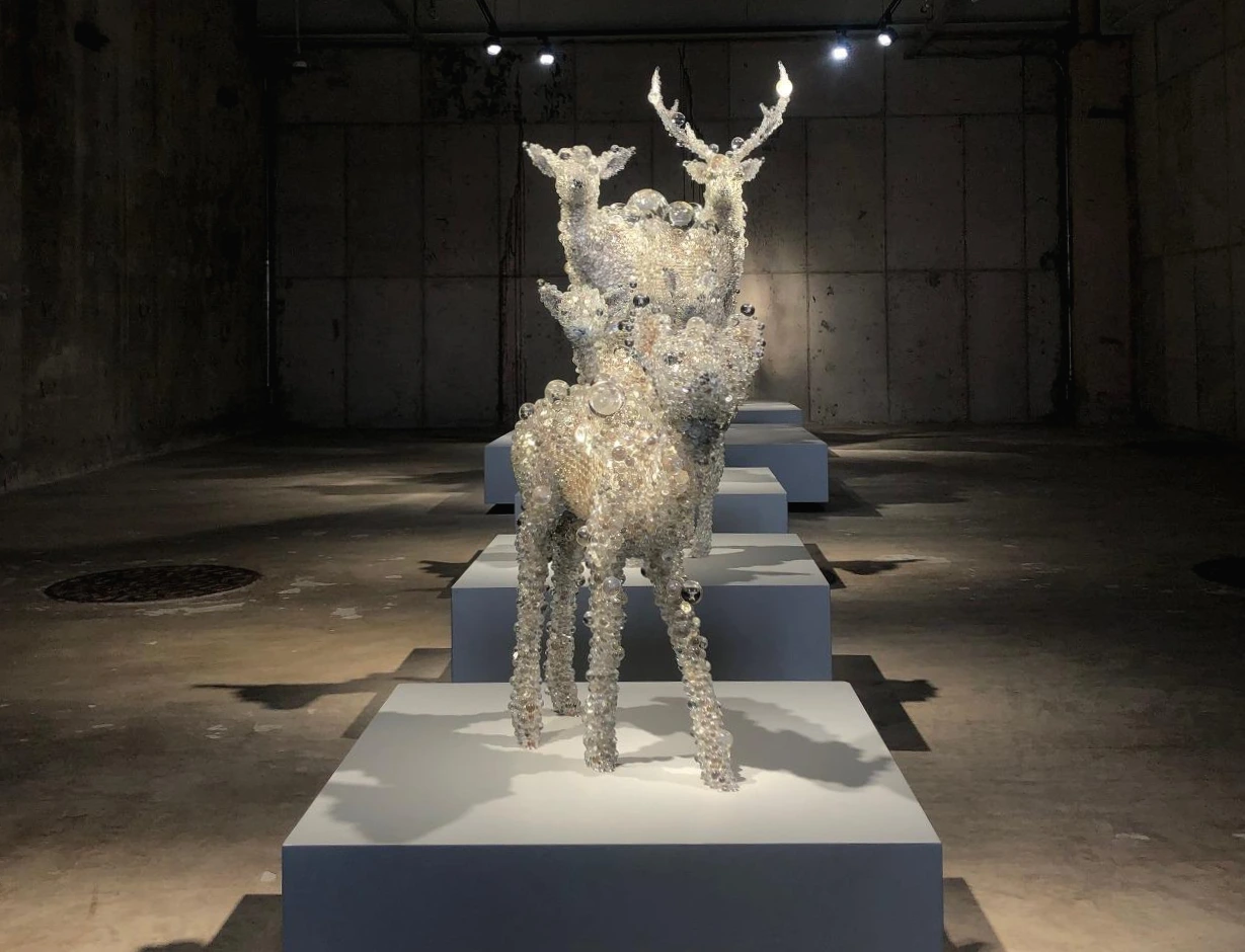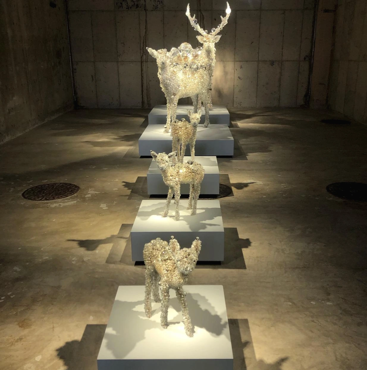 탑동 시네마에서 메인이 되는 작품이 아닌가 싶다. 박제된 사슴의 표면을 투명한 크리스탈 구슬로 덮어 마치 수많은 디지털 픽셀로 구성되어 있는 듯한 착각이 들게 한다. 각각의 구슬들은 본래 동물이 가진 색과 질감보다 내면의 본질적 형태를 직관적으로 보여줌으로써 시야와 인식의 지평을 넓혀준다고 한다.